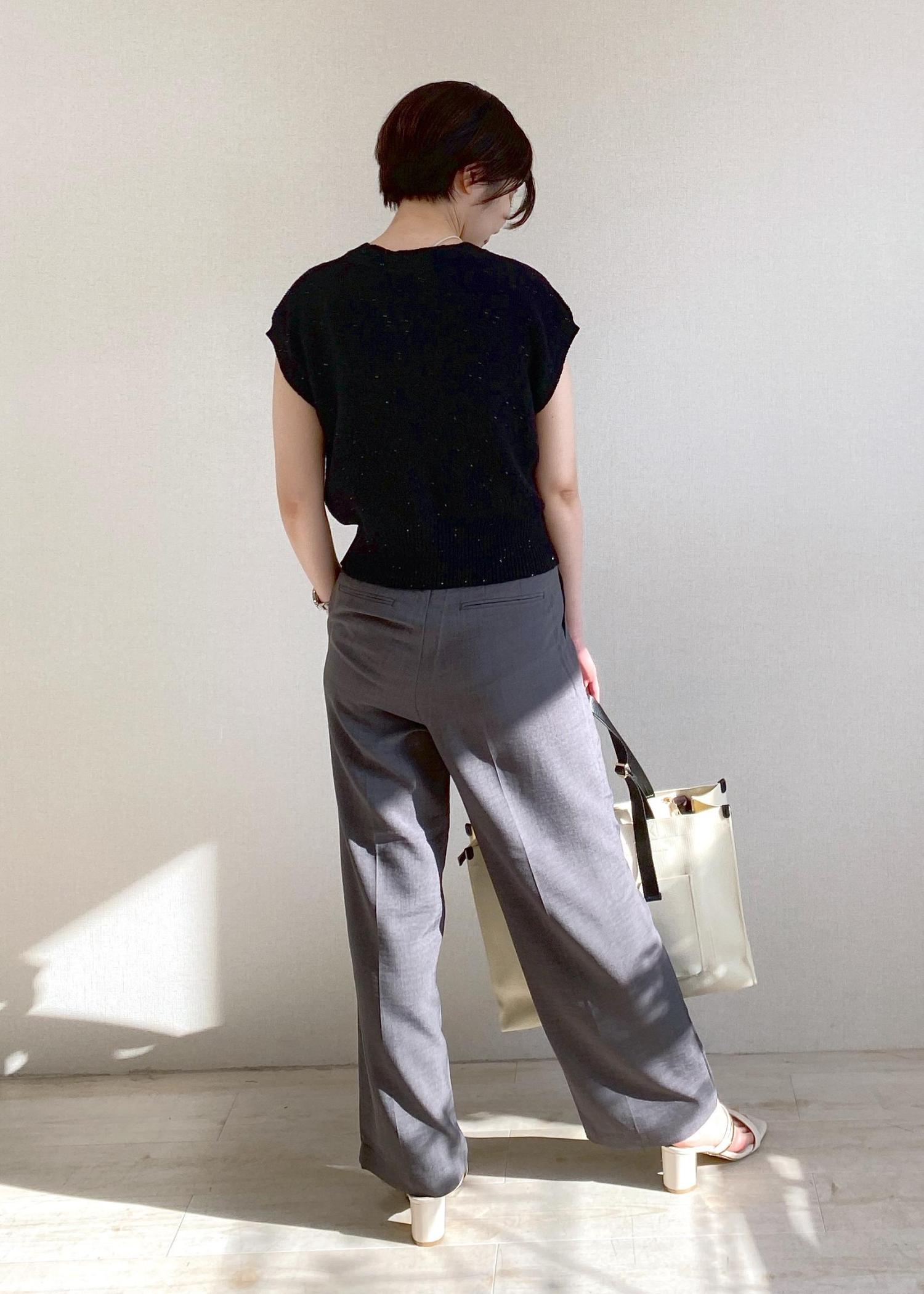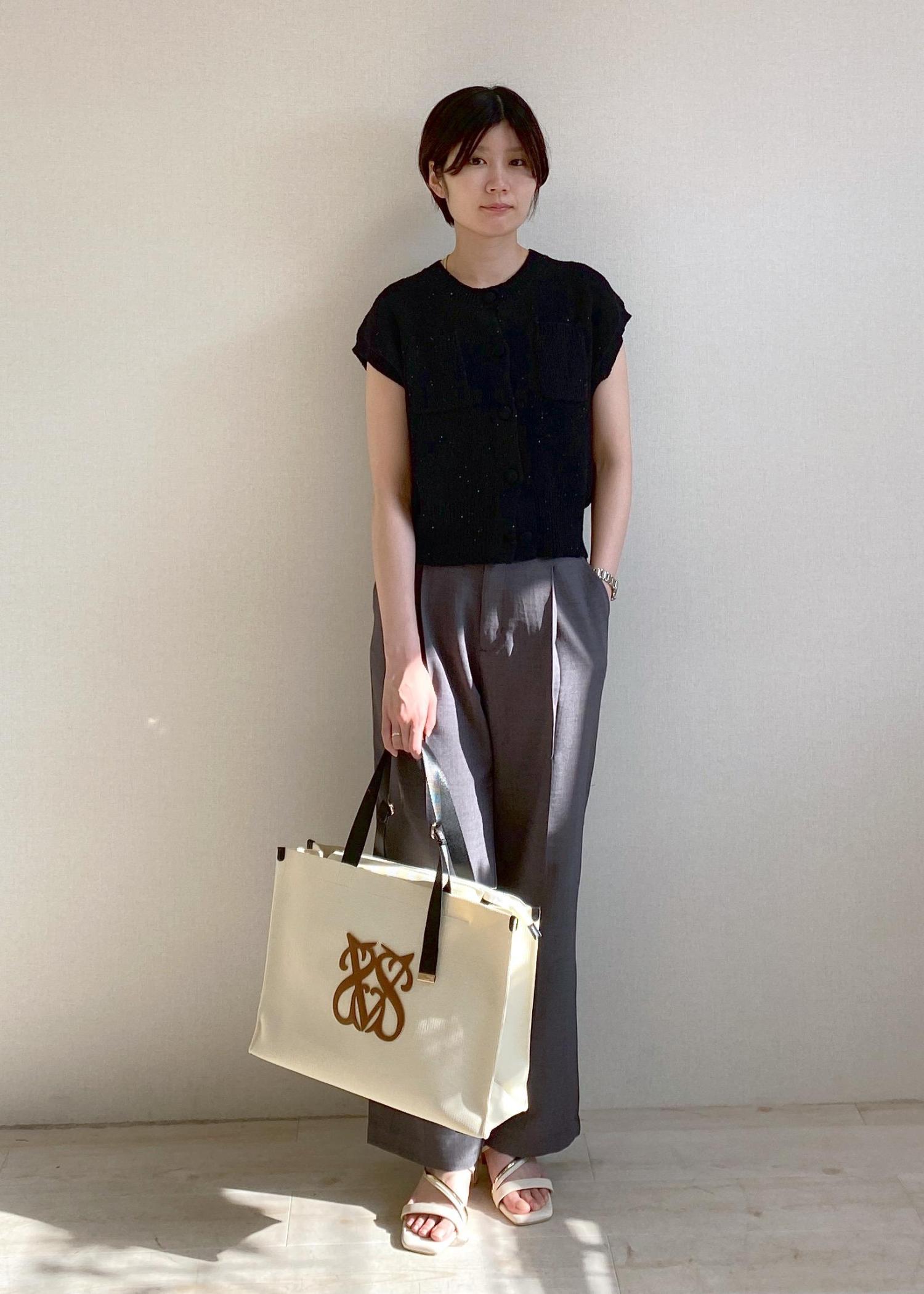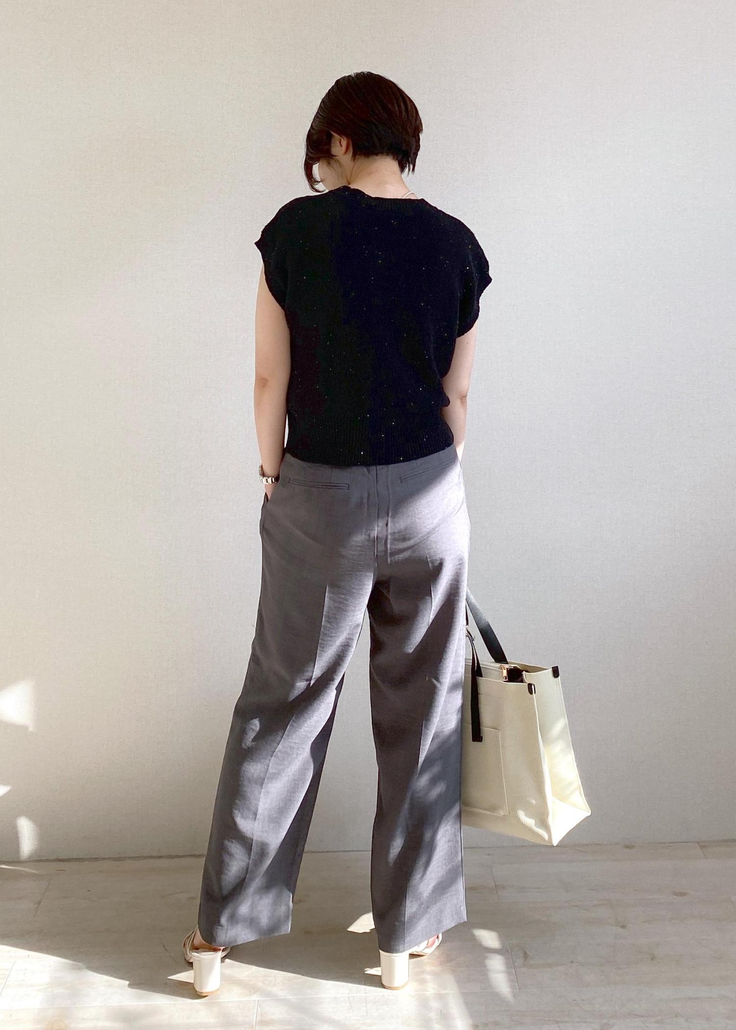 足元のシューズによってカジュアルに着こなしたり、パンプスであればキレイめにも着ることが出来るので重宝します。 -