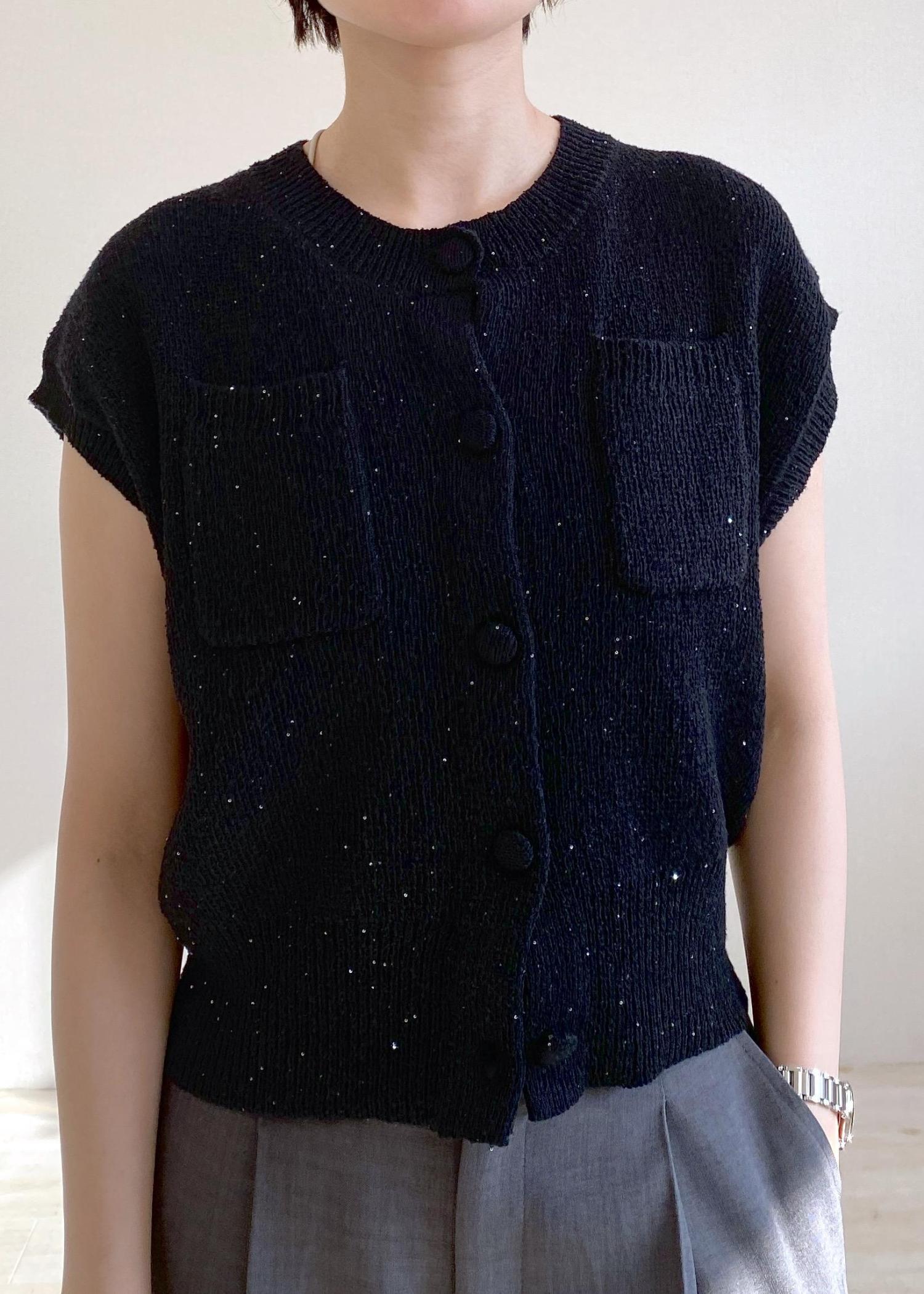 VISくるみ釦ニットトップスカーデ/洗えるブラック系 / F¥4,939レビュー少しラメ感があるのが可愛いです。