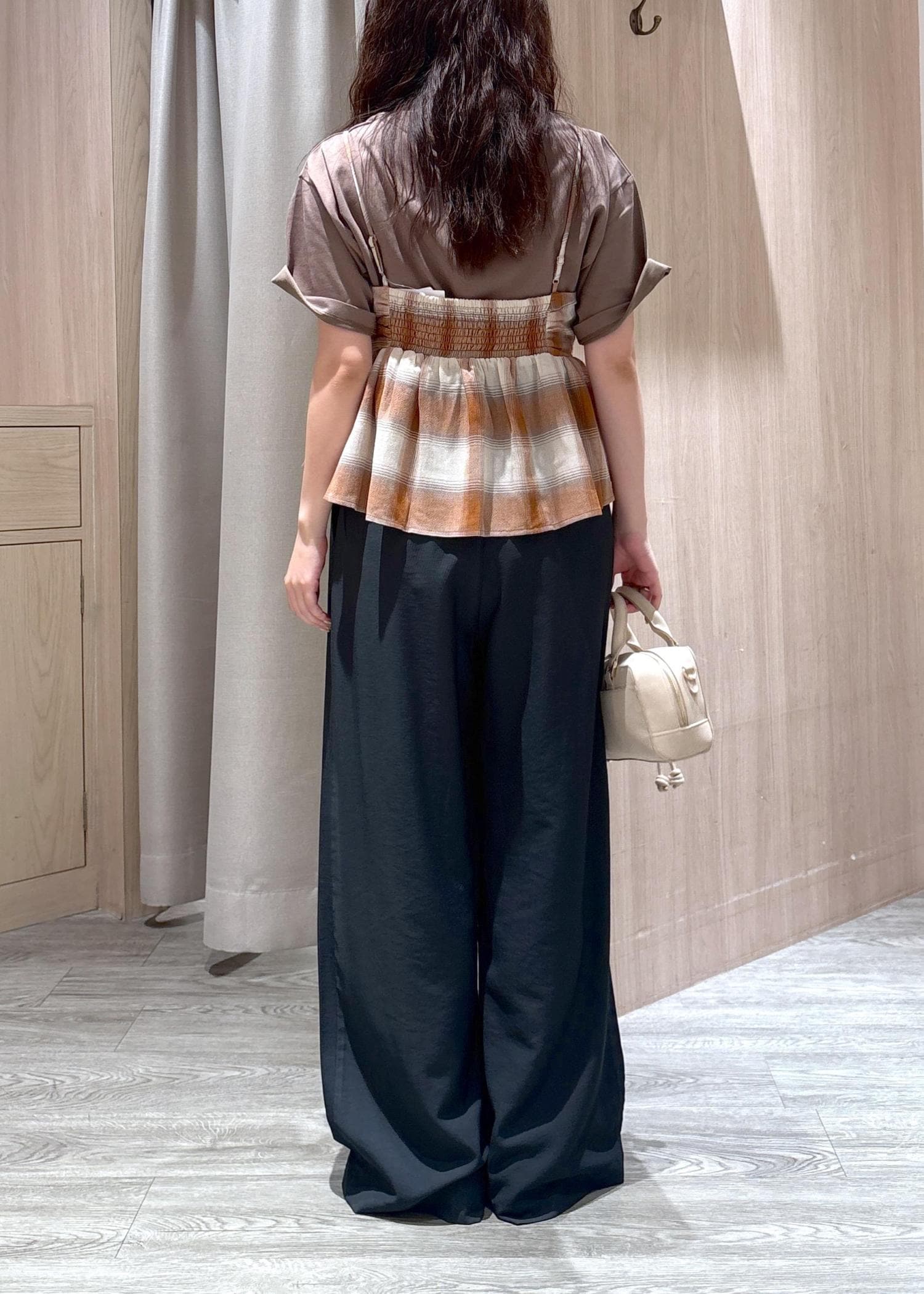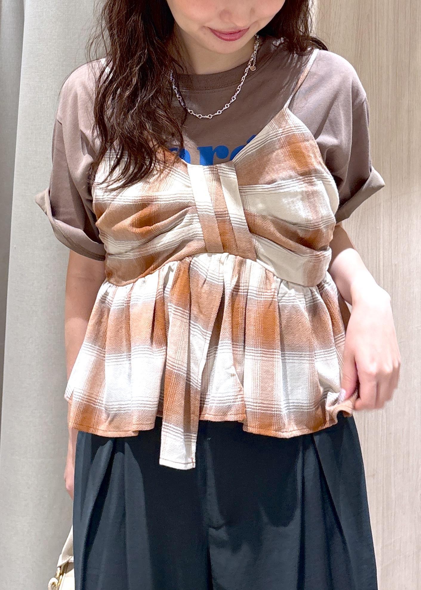 VISオンブレチェックリボンビスチェベージュ系 / F¥5,489レビュー程よいフィット感で、少し大きめのTシャツを合わせても問題なく着用できました◎