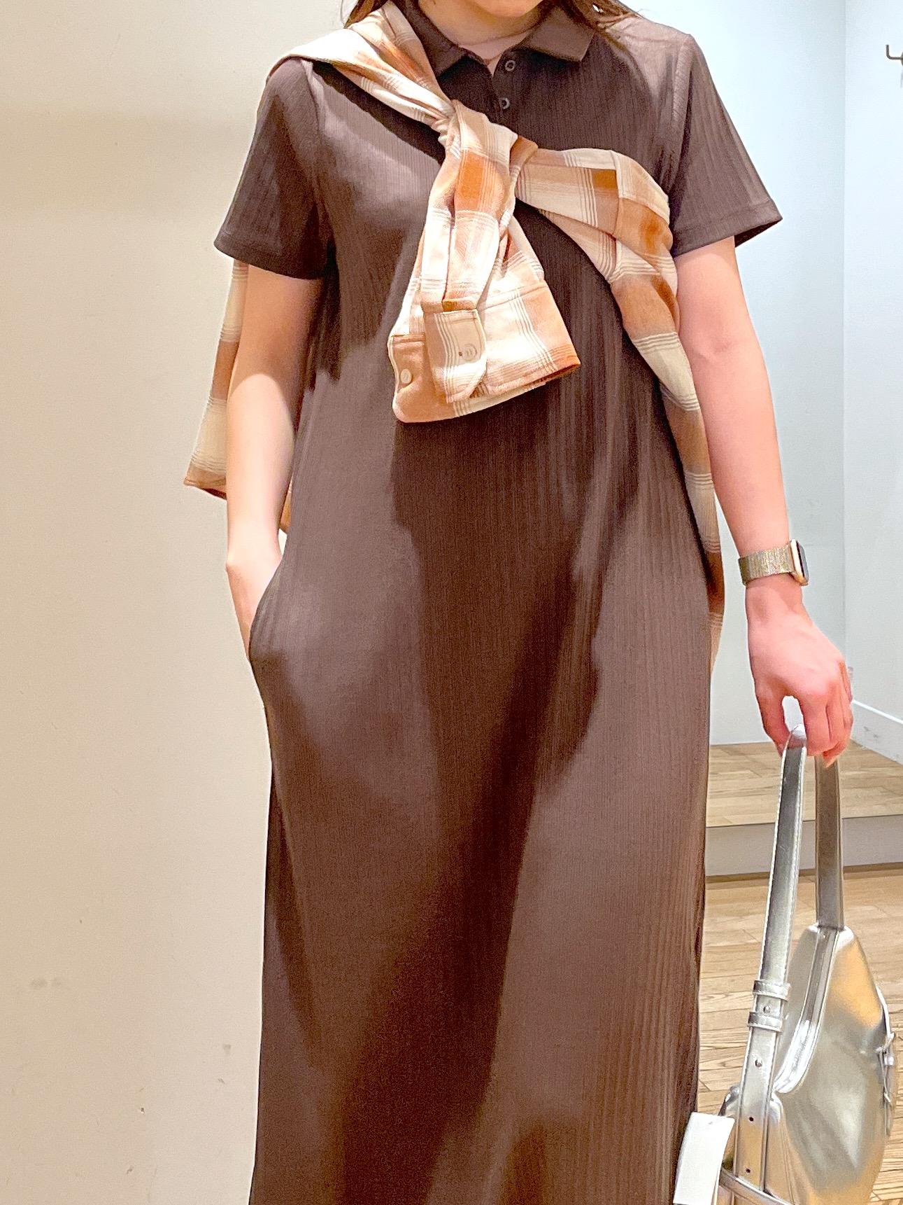VISポロ衿ランダムリブワンピースダークブラウン / F¥4,612レビュー体のラインがでないくらいのゆとりがあります。