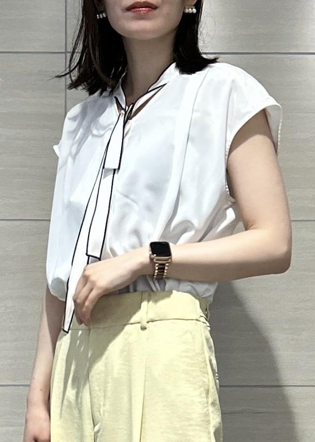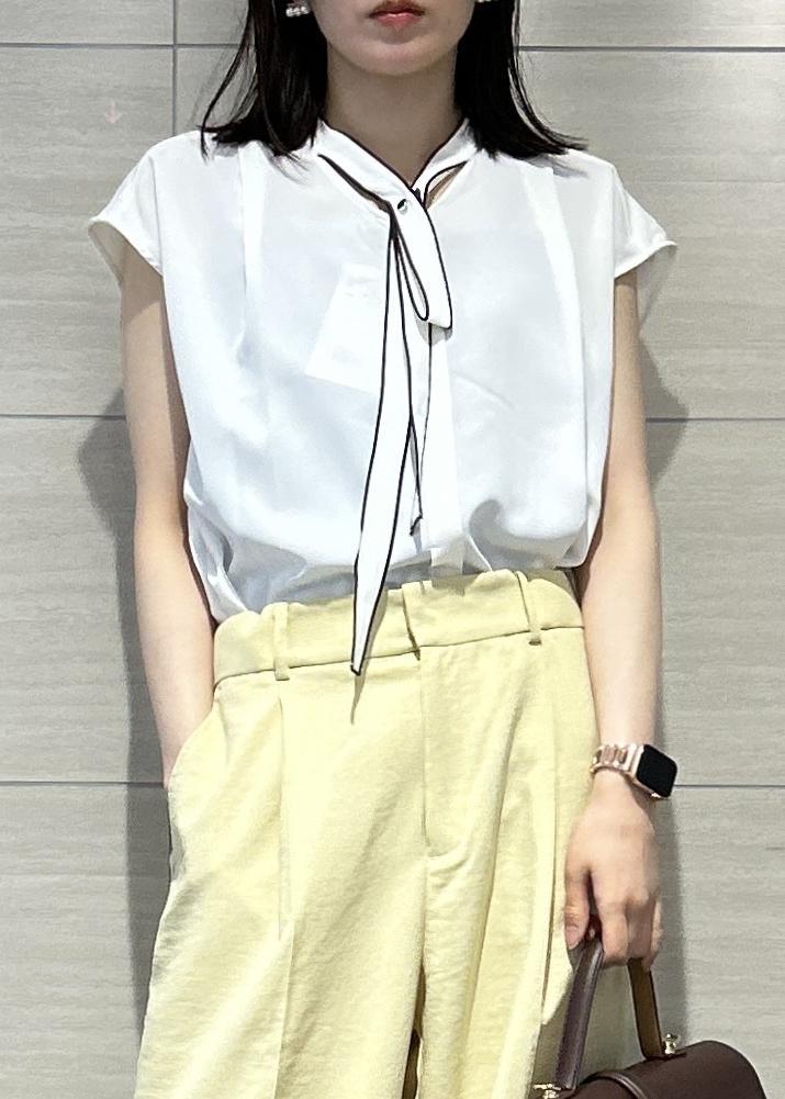 アウトレットVIS【接触冷感】配色ボウタイタックブラウスホワイト / F¥2,470レビューとにかく清潔感が溢れています!