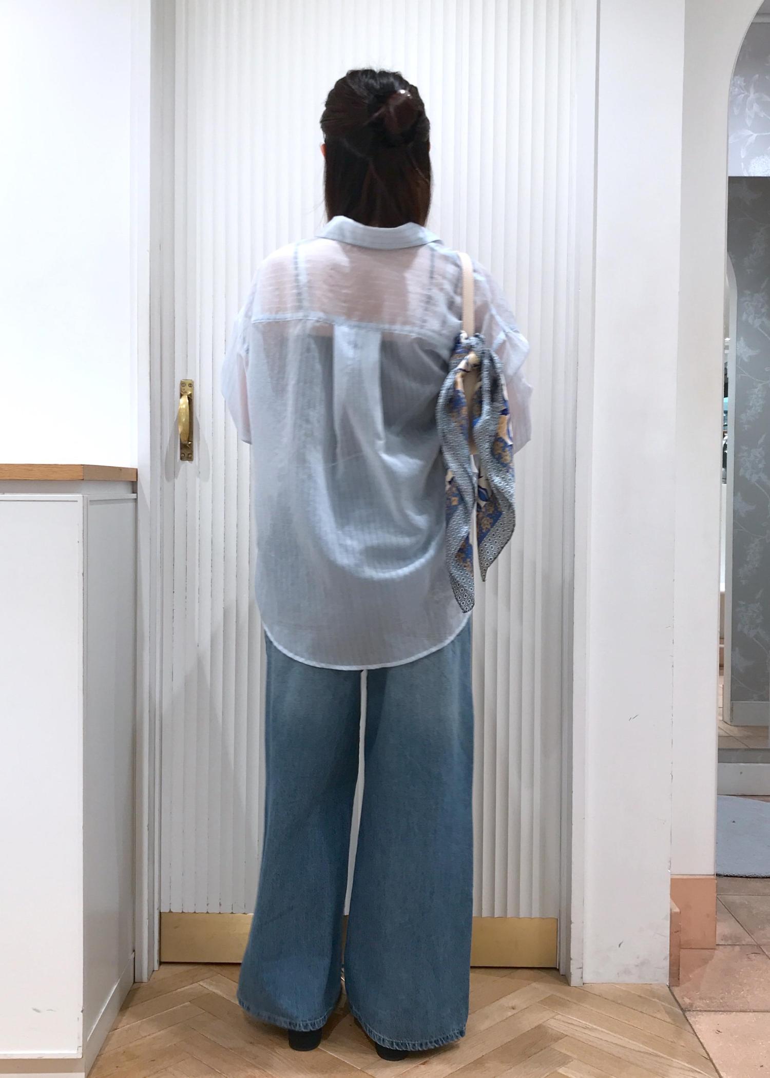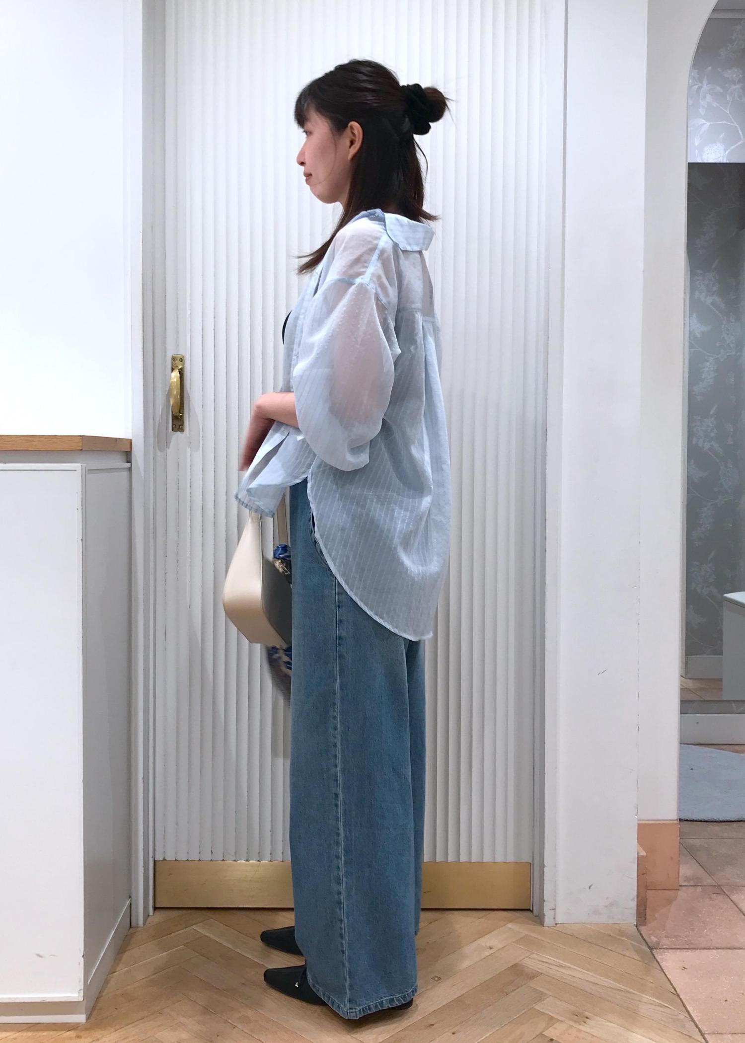 インナーはキャミソールにして、シアーのシャツを合わせてカジュアルになり過ぎないようにしました。