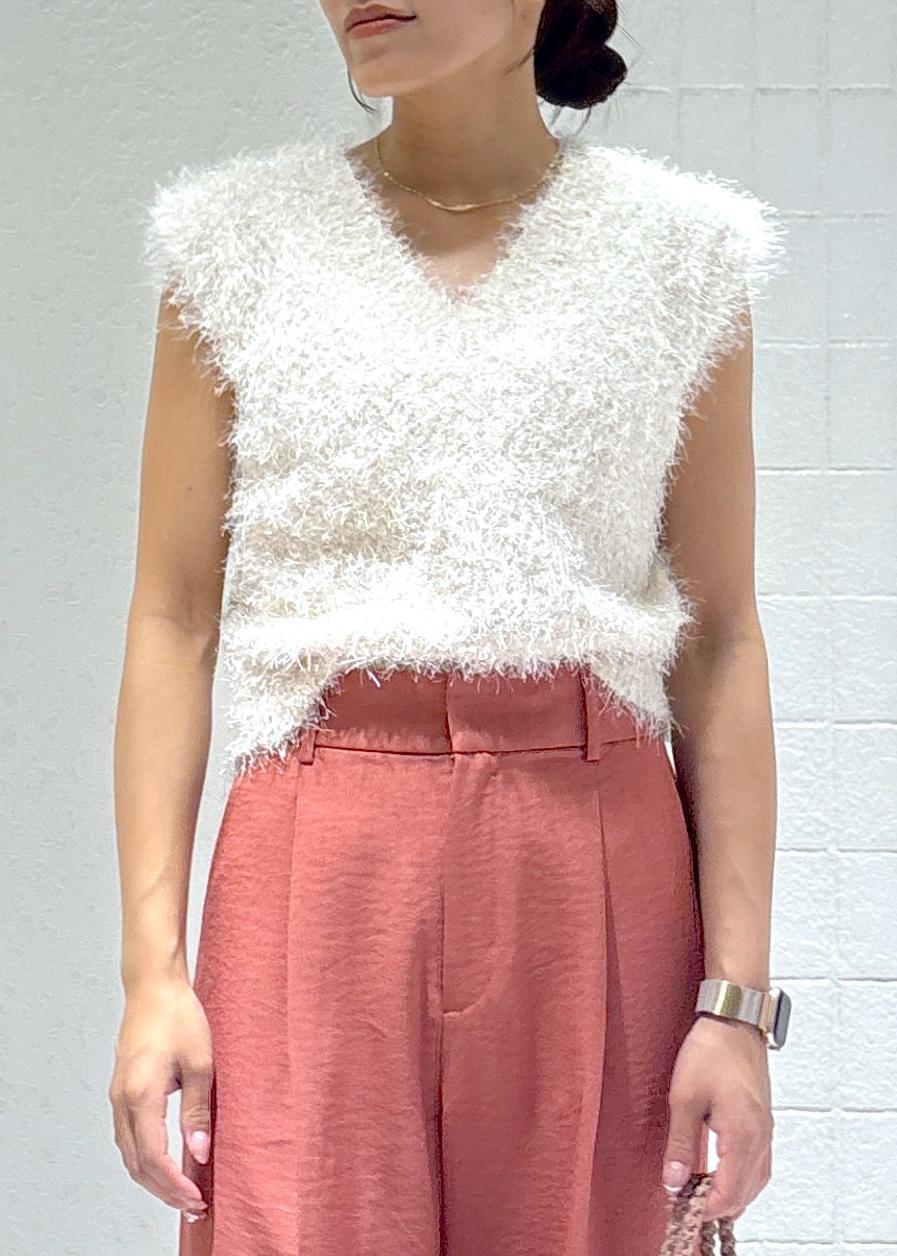 新作のフェザーベストを使って秋先取りコーデに♡