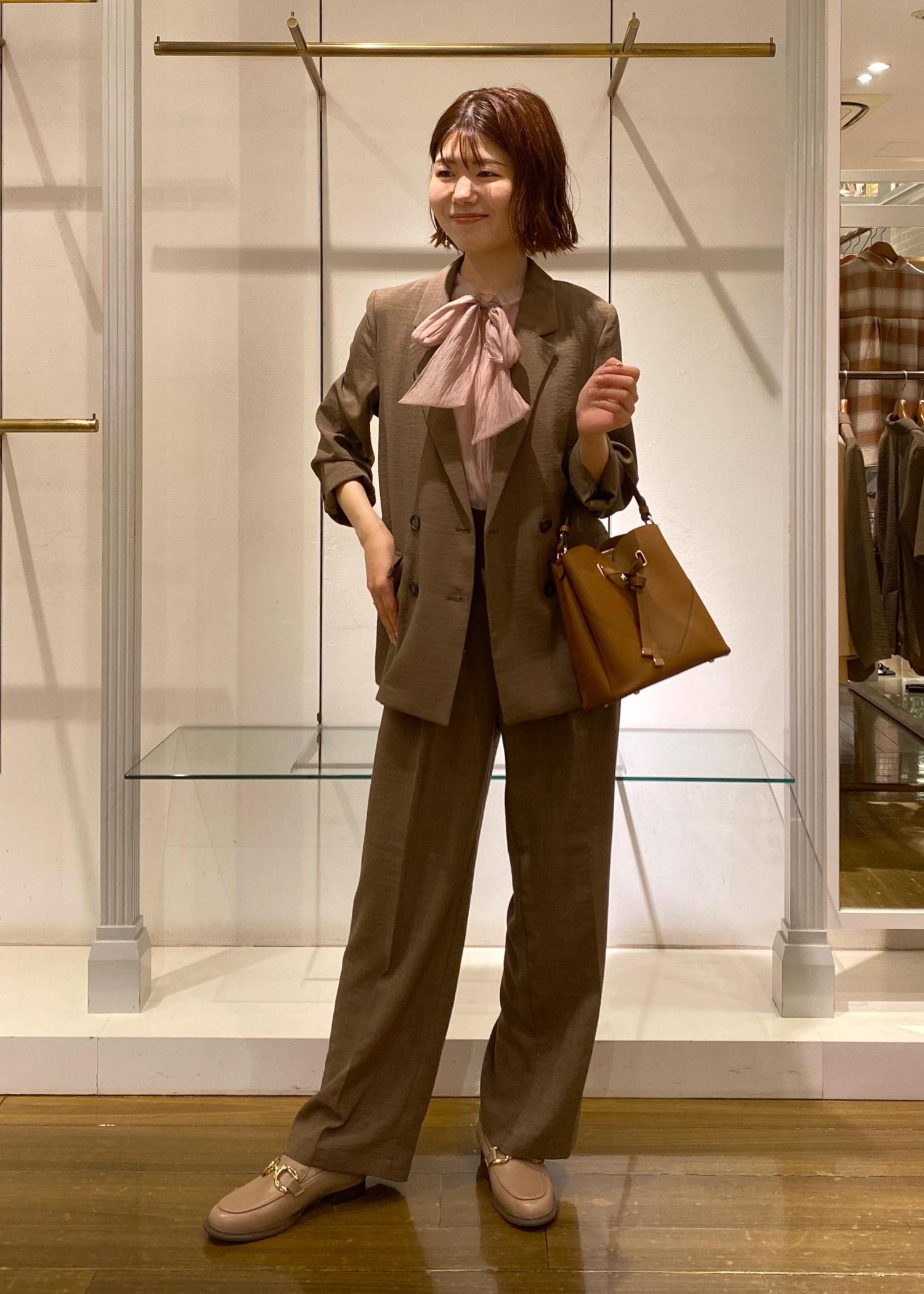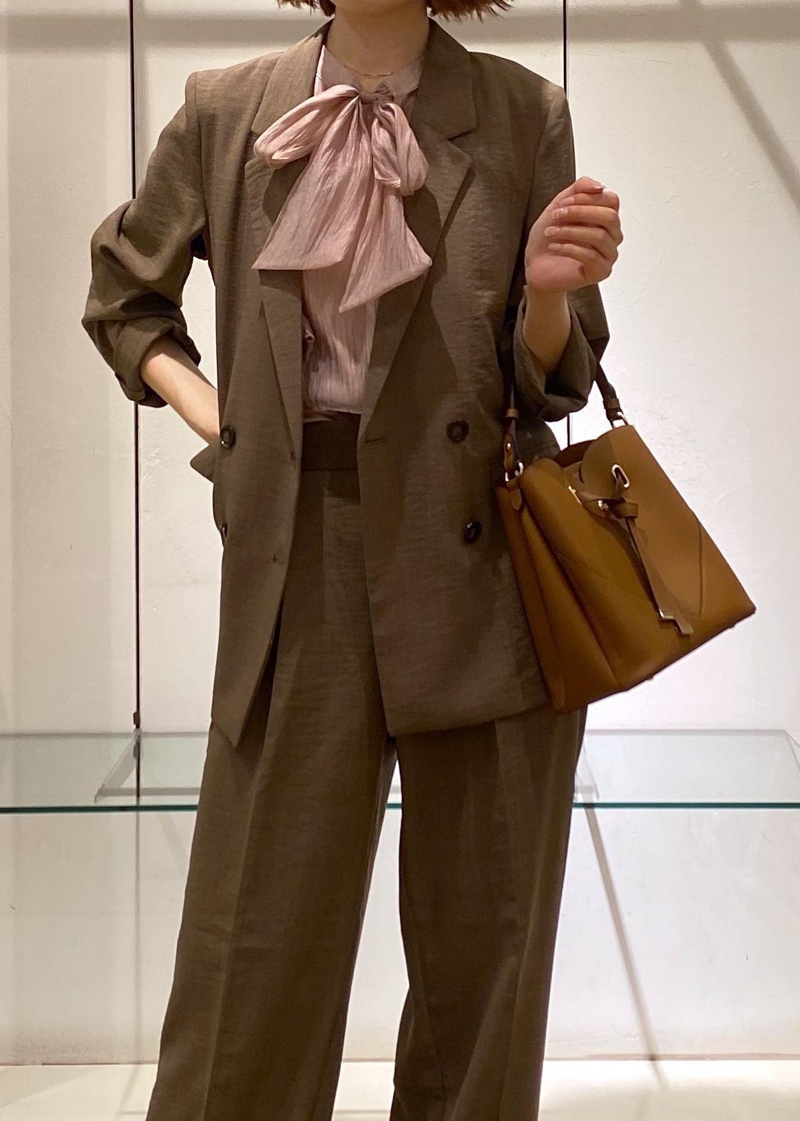 ツヤ感が女性らしく、キレイめ・カジュアルめなスタイリングどちらもオススメです◎