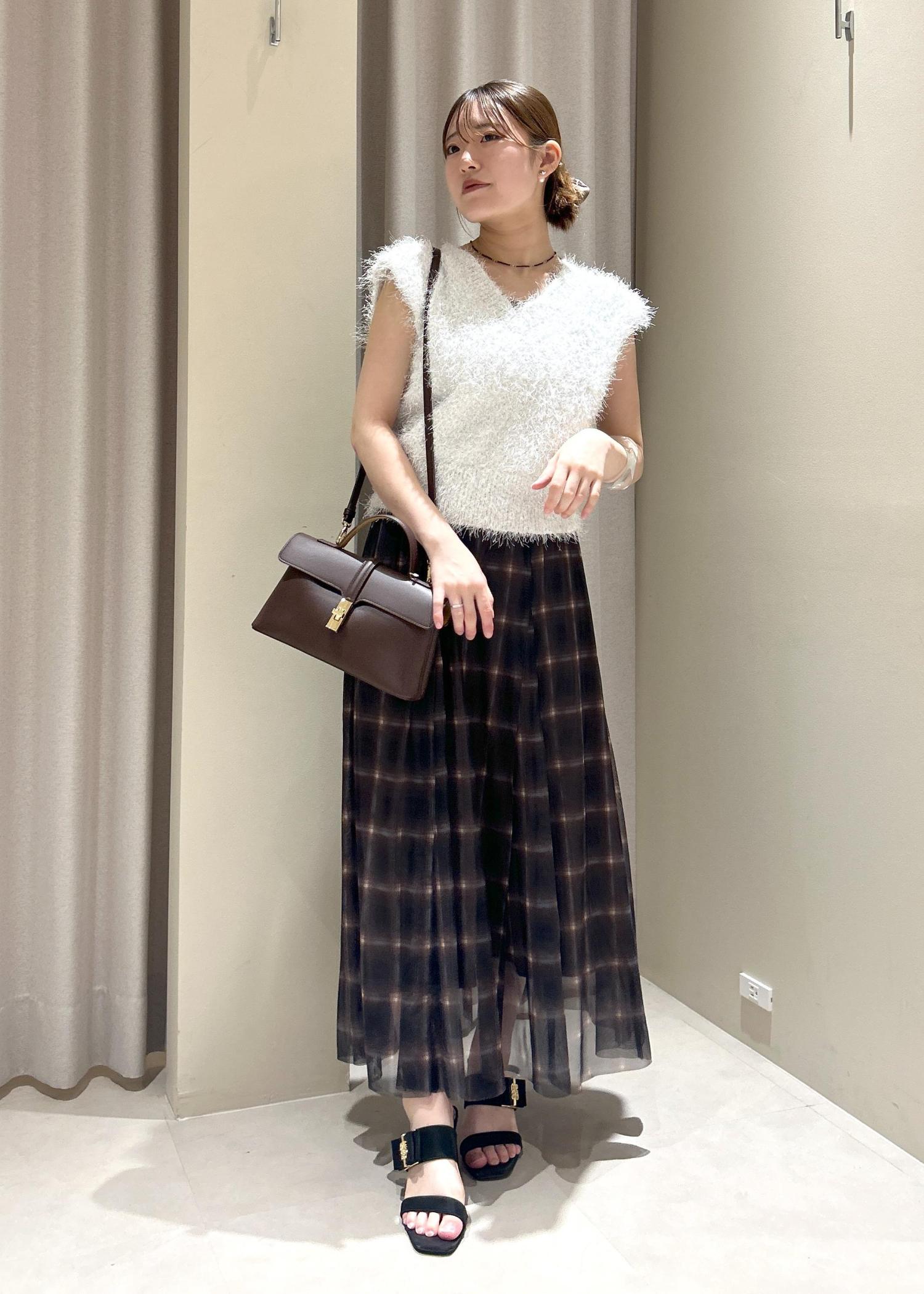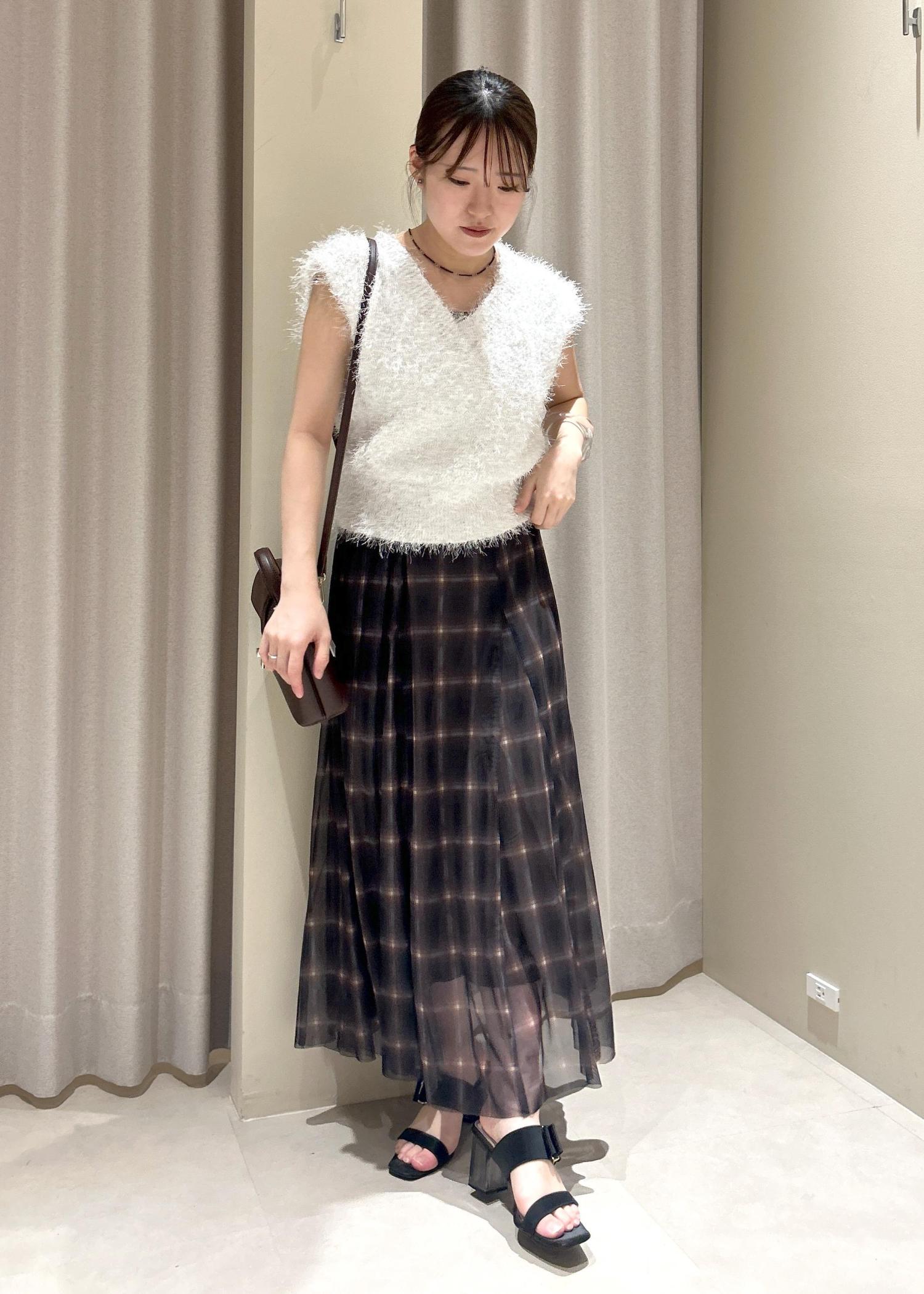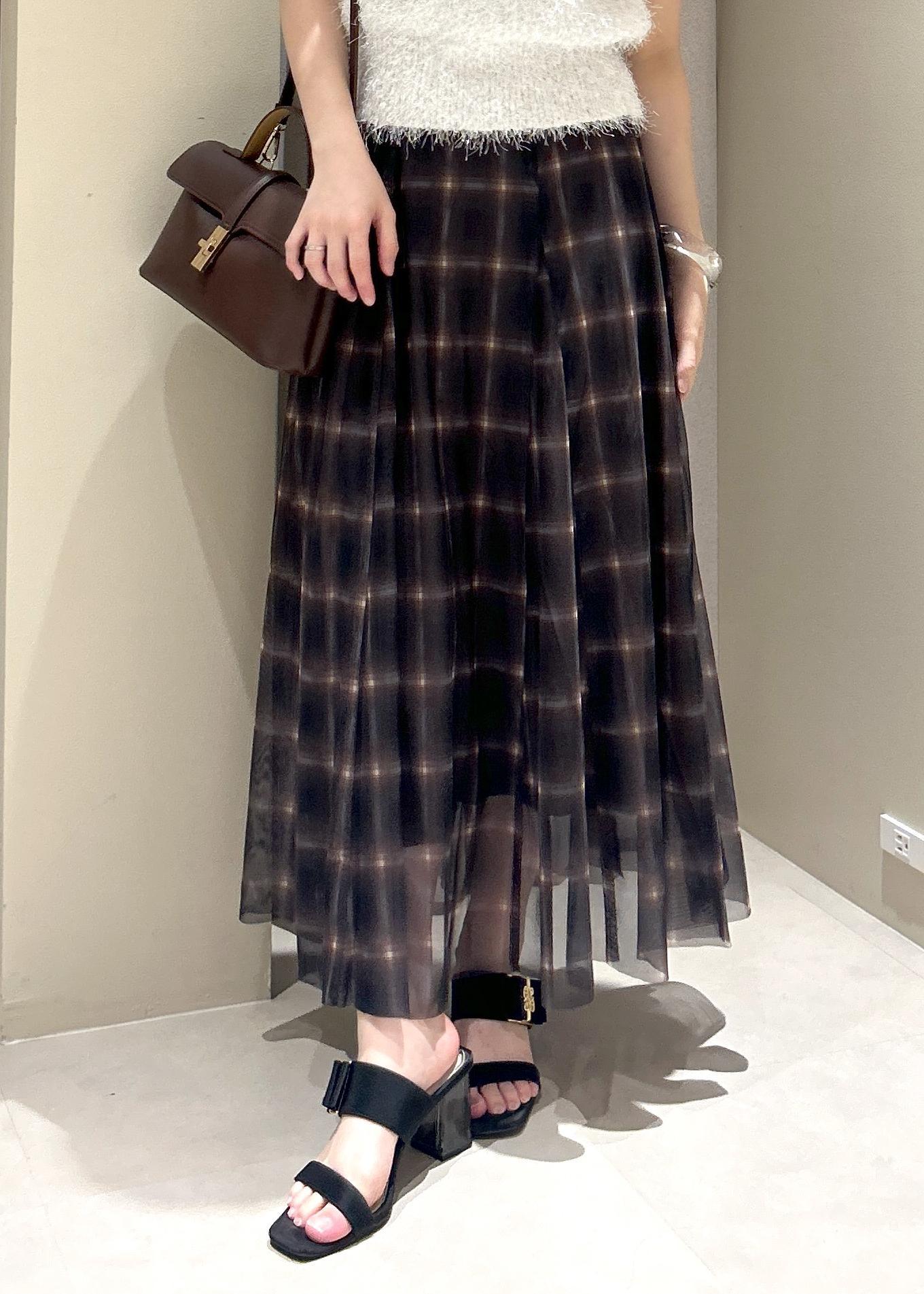 VIS【洗える】チュールプリントチェックスカートダークブラウン系 / F¥4,612レビューサラッとした薄い生地で肌触りのいいチュールなので着心地抜群