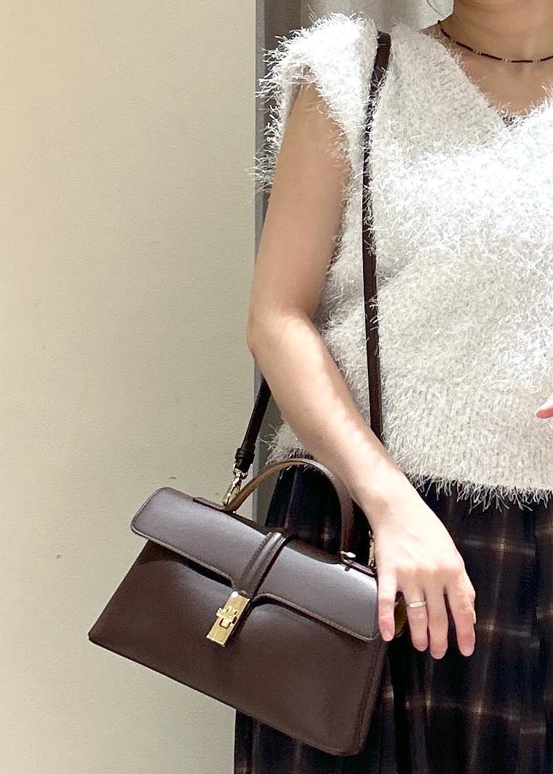 VIS【新色追加】ひねり金具ワンハンドルミニショルダーバッグダークブラウン / F¥5,489レビューショルダーバッグにもすることが可能です。長財布もスッキリ入れられるサイズ感で、持つだけで上品な雰囲気を演出してくれます。