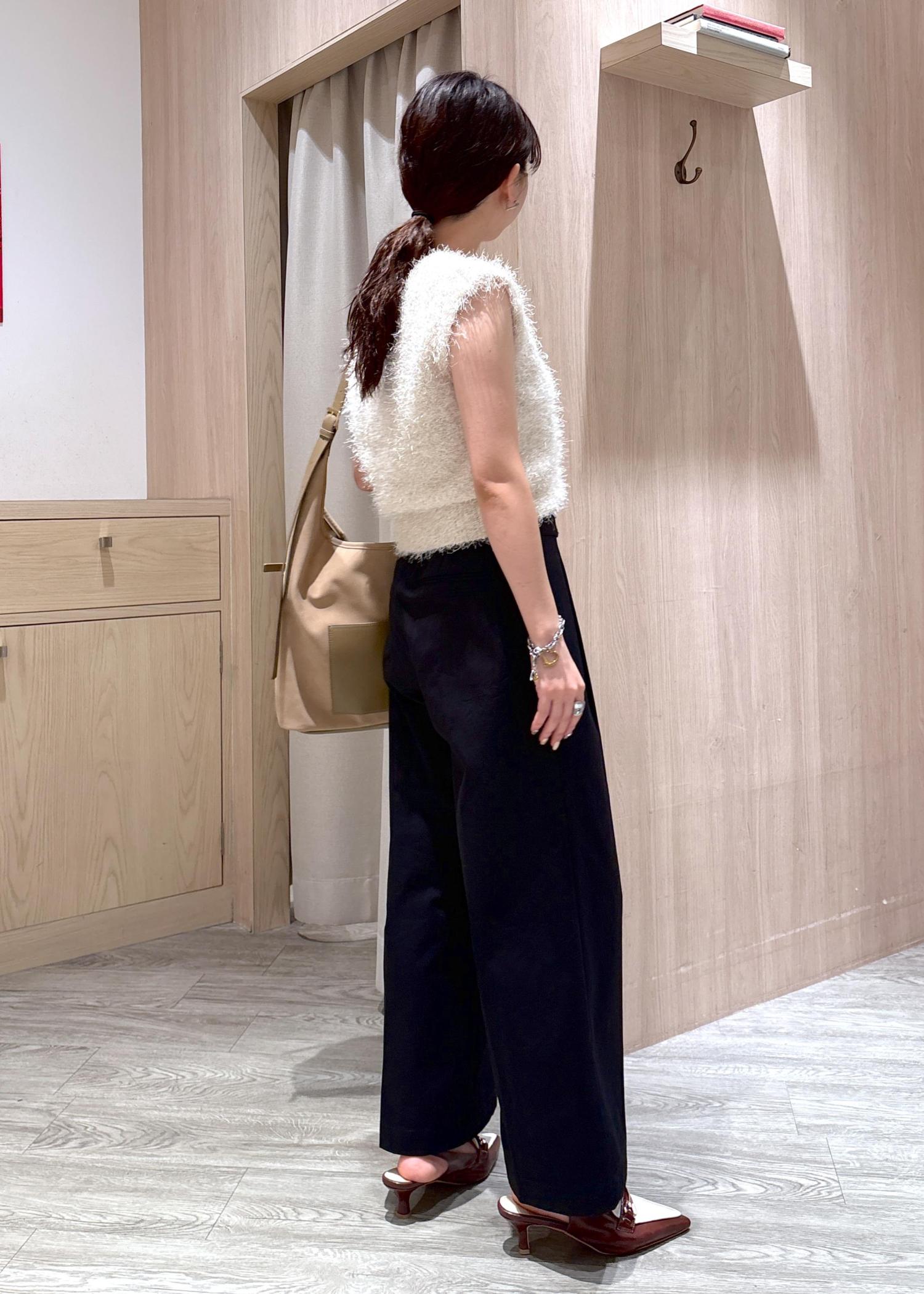 ウエスト部分が折り返しできるデザインで、雰囲気を変えて着用できます。張り感があり、体のラインも拾いづらいです! -