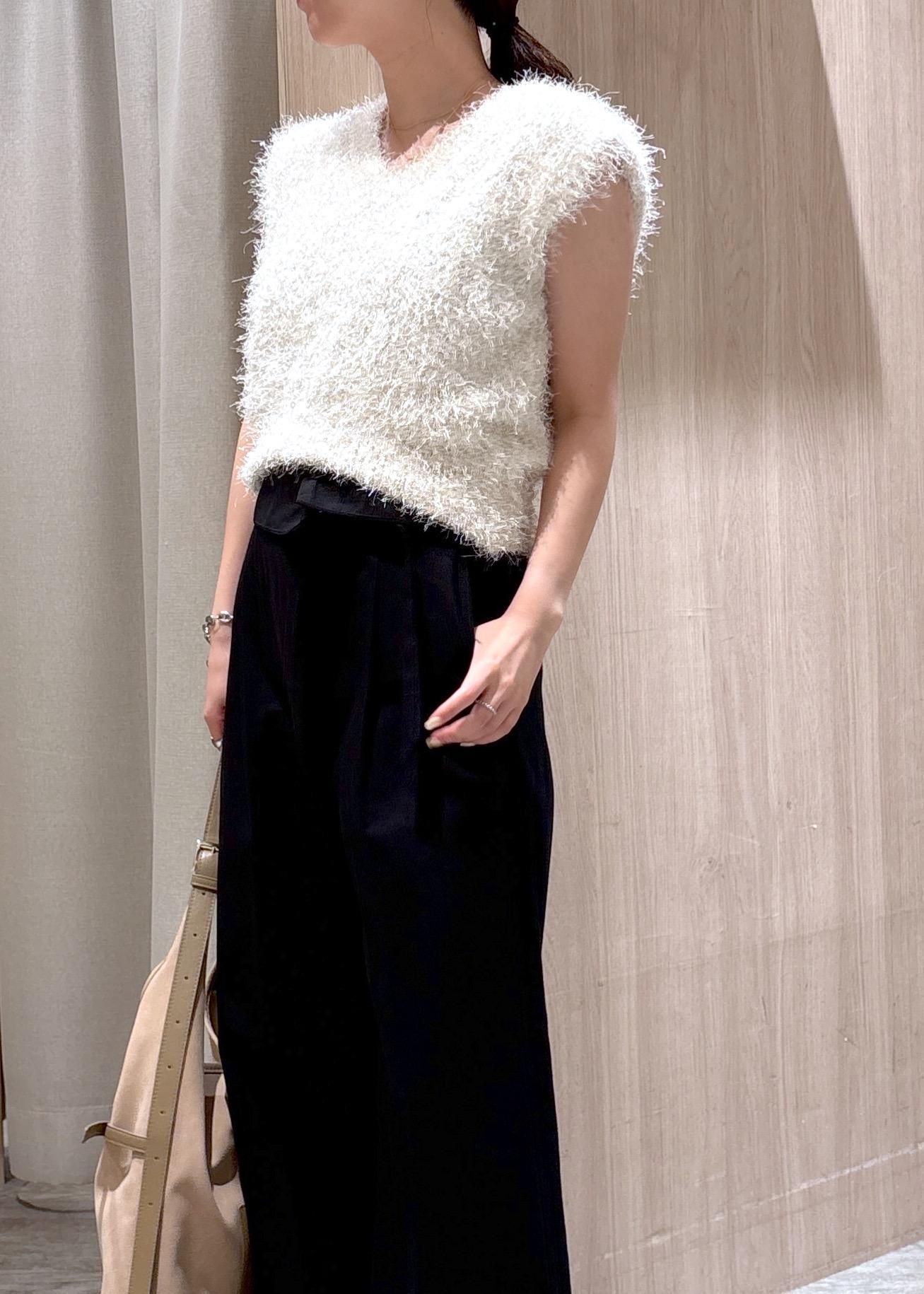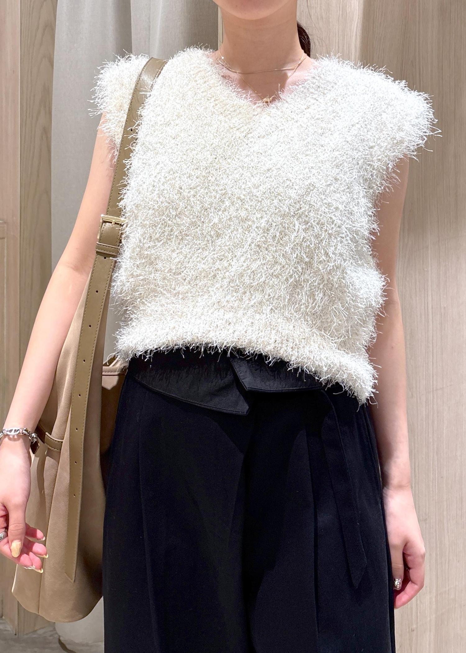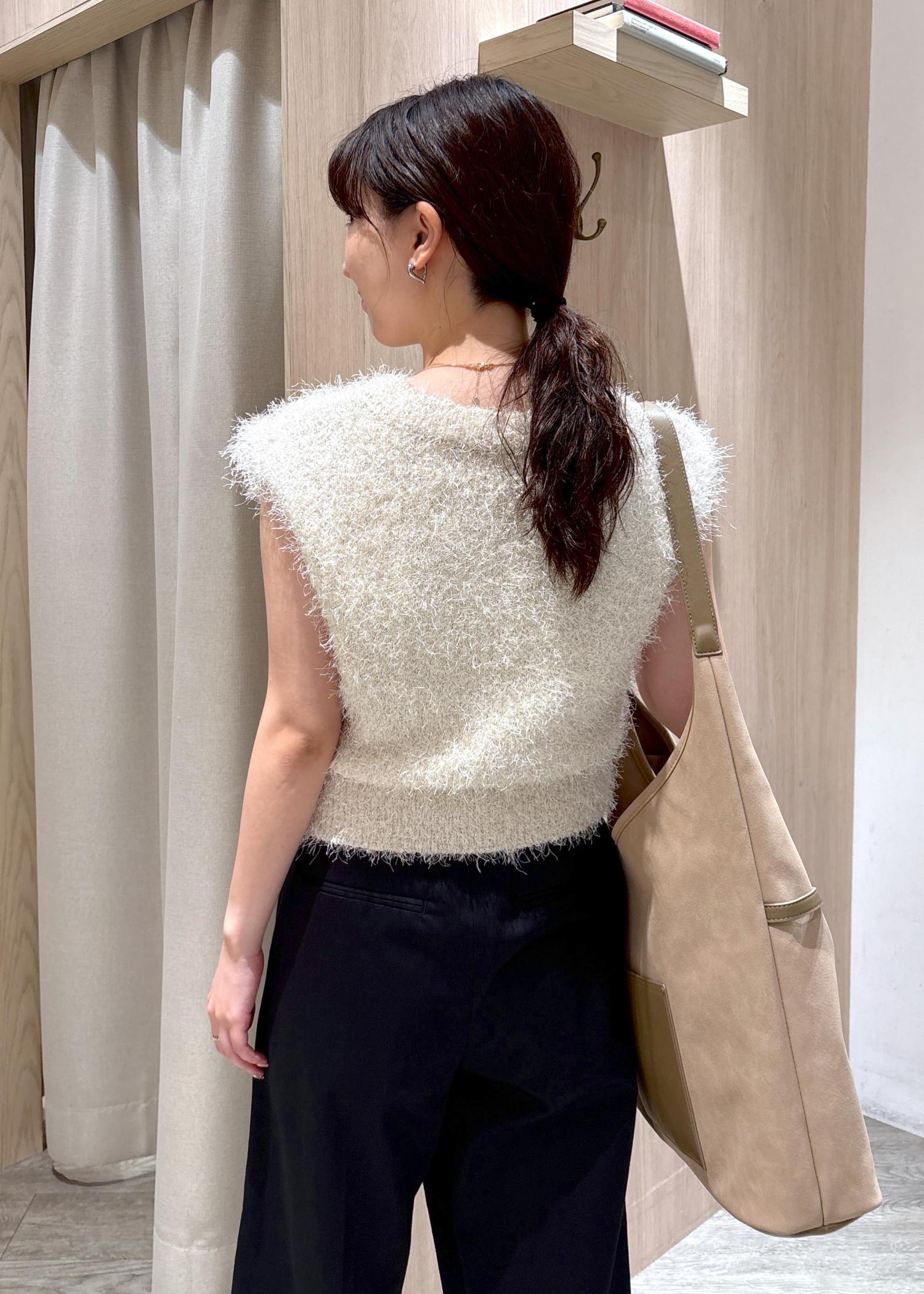 VIS【WEB限定サイズ:MT/着丈が選べる】【洗える】フェザーヤーンニットベストキナリ / M¥3,293レビューイン、アウトどちらもしやすい丈感です。