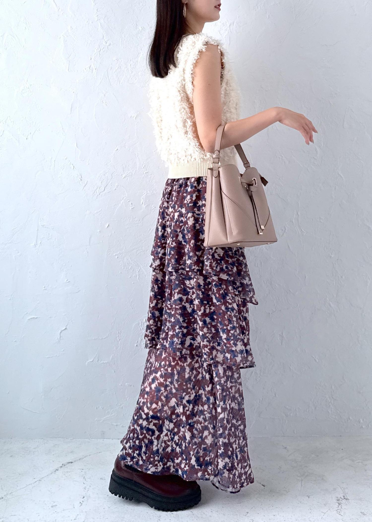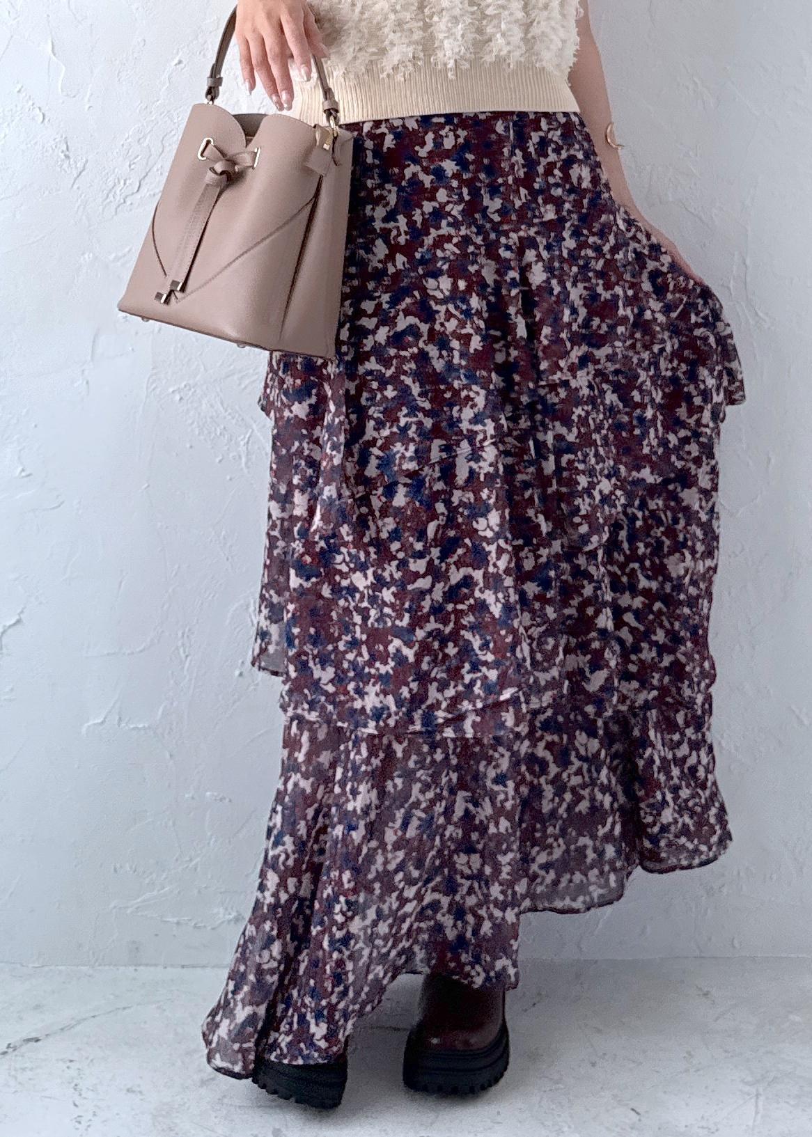 VIS花柄アソート楊柳ティアードスカートブラウン系 / F¥4,613レビュートレンド感のある主役級のスカート。