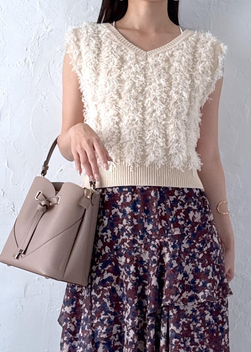 VIS【2WAY】フリンジニットベストキナリ / F¥5,929レビューフワフワなフリンジデザインが可愛いニットベスト。