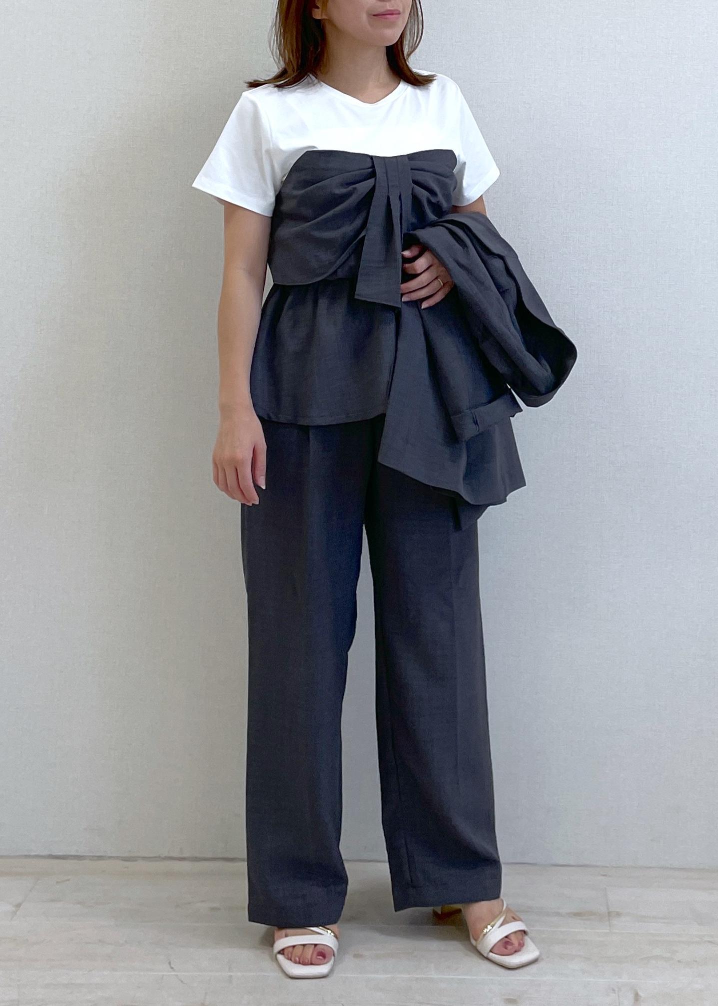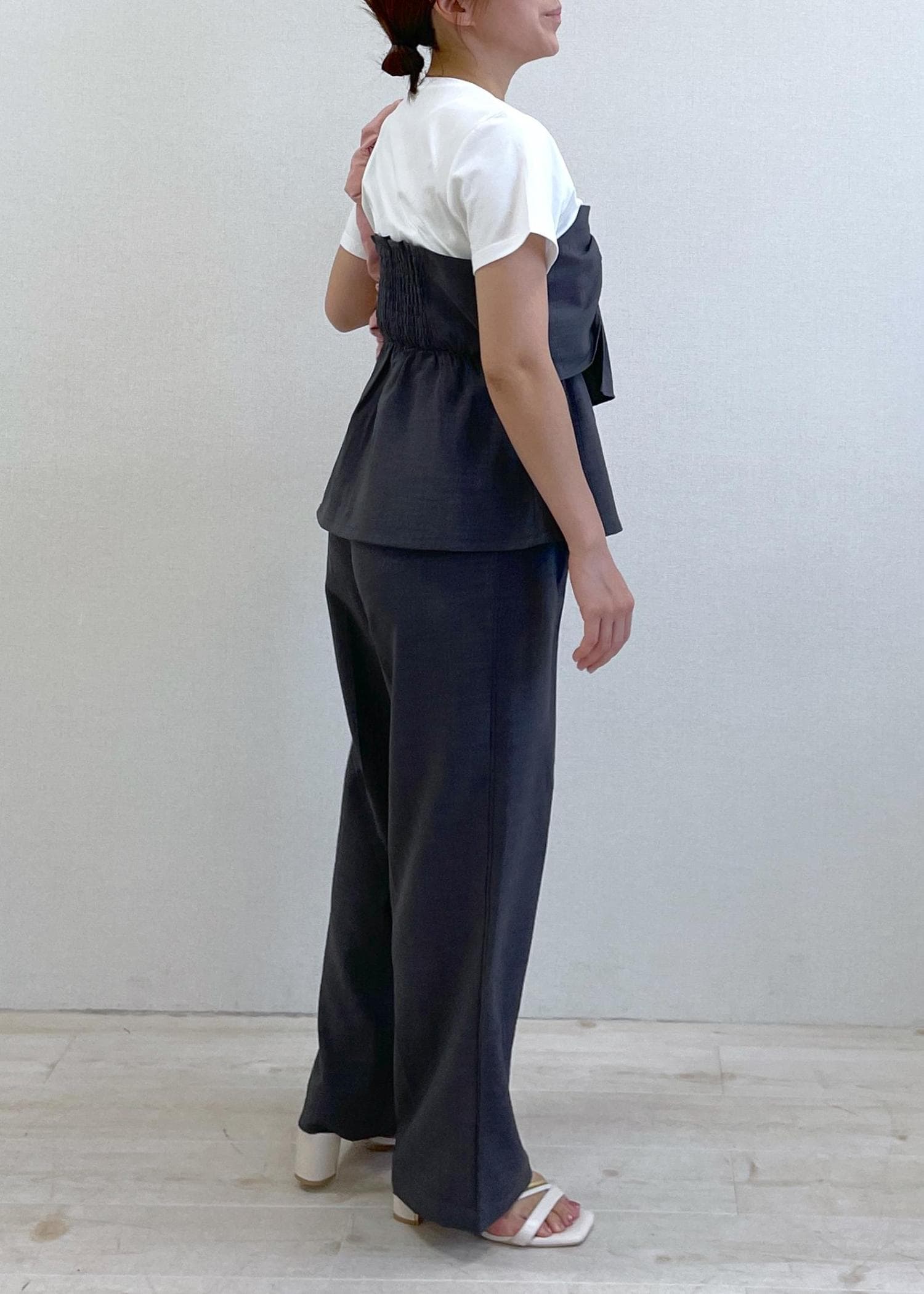 【新色追加】【美easy】ねじりリボンTシャツドッキングプルオーバー【接触冷感/洗える】
