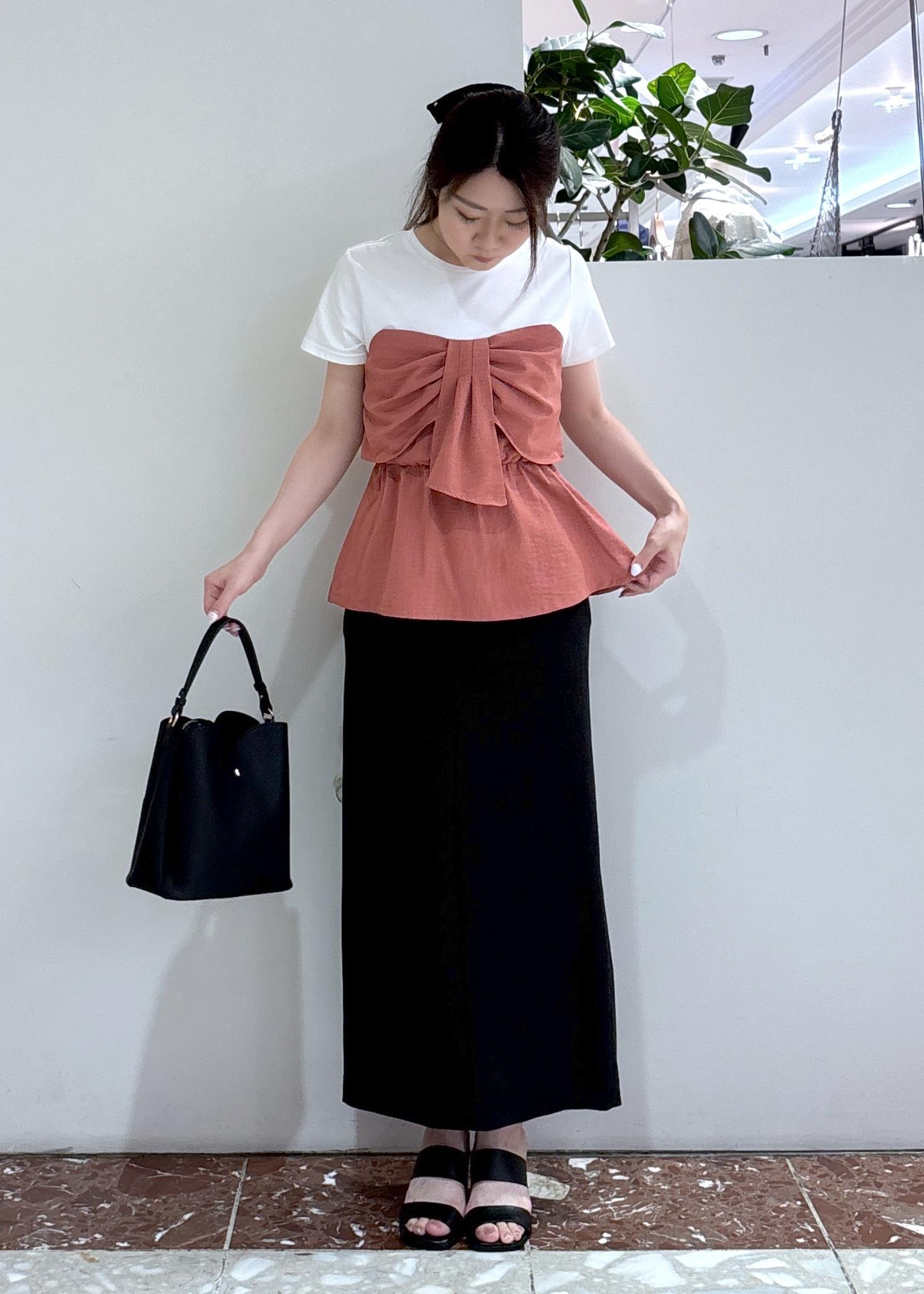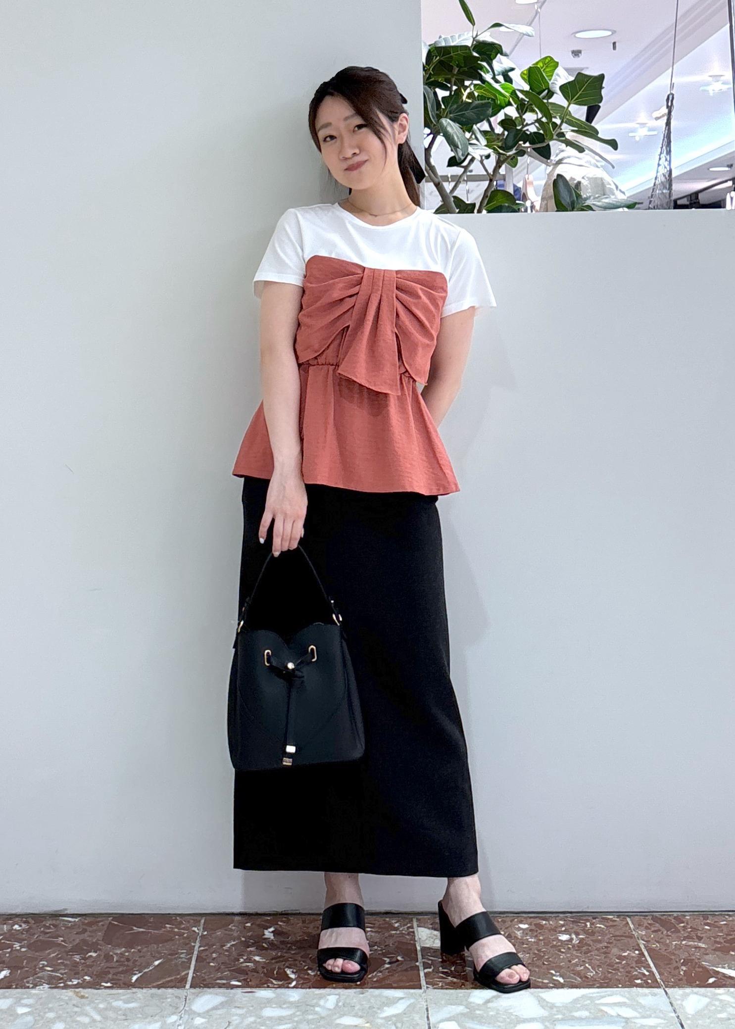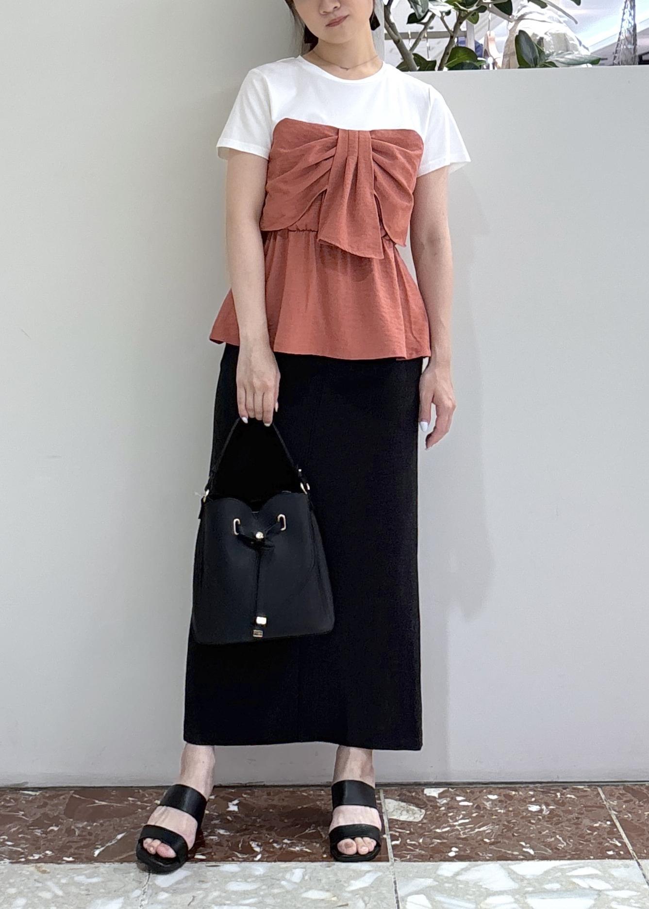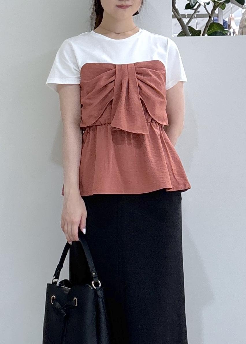 VIS【新色追加】【美easy】ねじりリボンTシャツドッキングプルオーバー【接触冷感/洗える】オレンジ系 / F¥5,489レビュー裾がフワッと腰周りにかかるので体型カバーできます◎