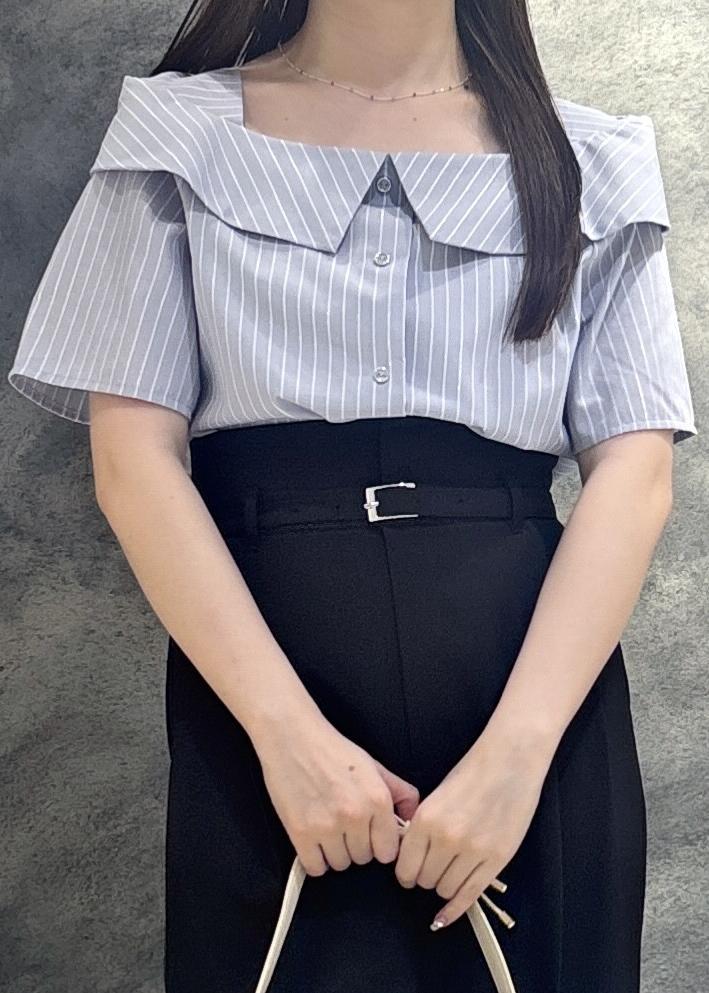 VIS【新色追加】【防シワ】ラメミックスオフショルダー風ストライプシャツライトグレー / F¥5,489レビューオフショル風なのに、インナーの紐を隠してくれます◎