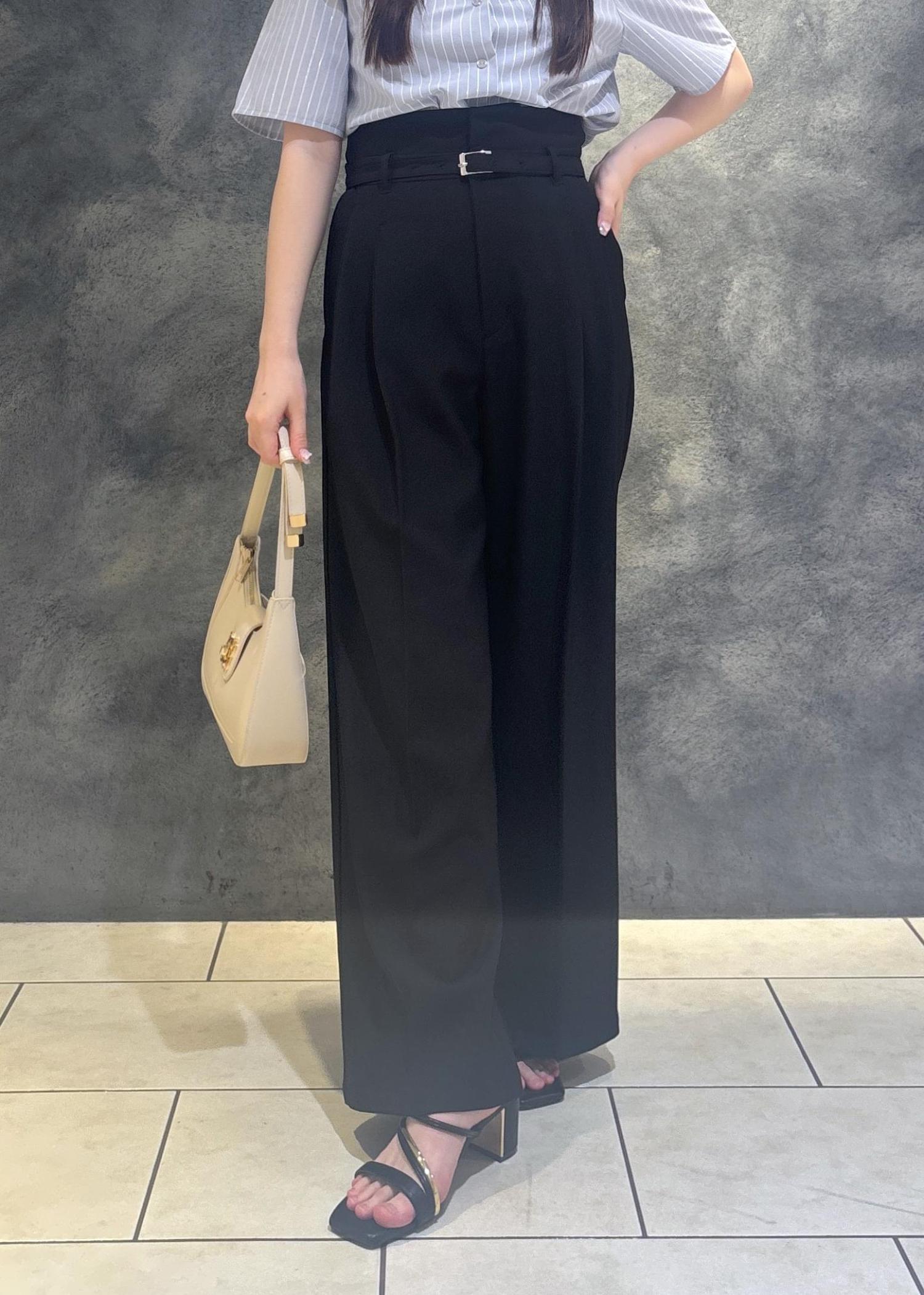 VIS【新色追加】【防シワ/接触冷感】ベルトディテールタックワイドスラックスパンツブラック / S¥6,589レビュー155センチでかかとに少しかかるくらいの長さです!
