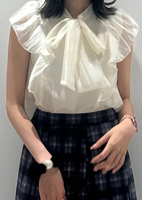 VIS【店頭人気】主役級!華やぎシアーシャイニーボウタイフリルブラウス【前後2WAY】【洗える】キナリ / F¥5,489レビュー前後2WAYで着用でき、後ろリボン結びも楽しめるシアー素材のトップスです。二の腕をカバーする大きめフリルと、肩から流れる二重のラッフルがフェミニンな印象を演出してくれます。