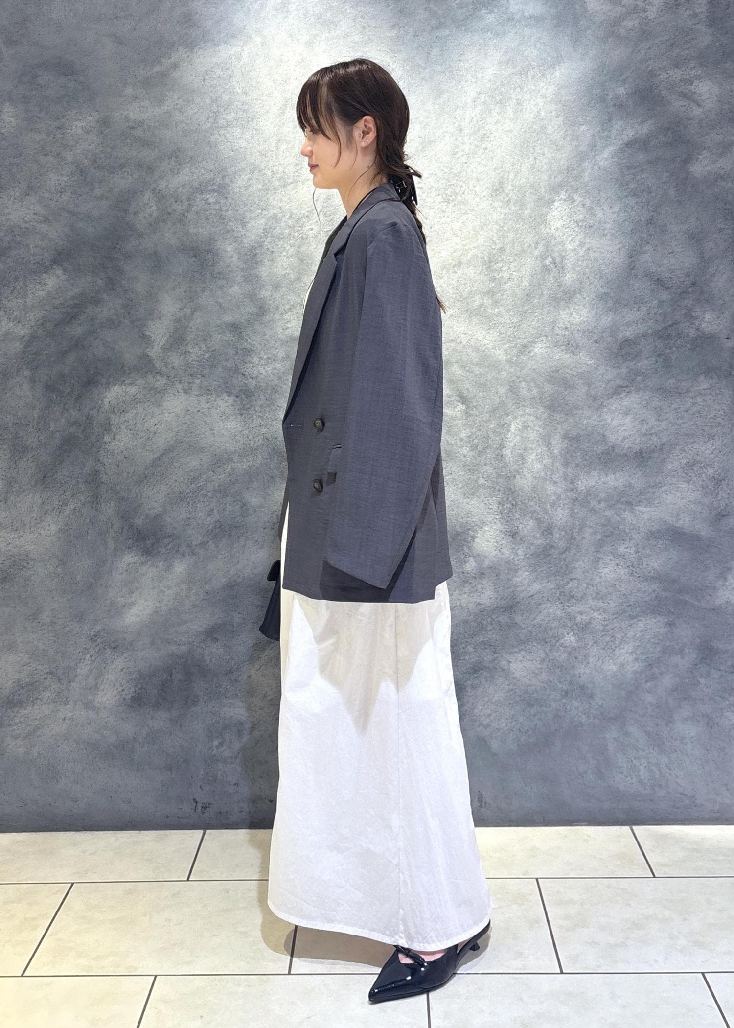低身長の方でも袖を折るとすっきりして見えます!