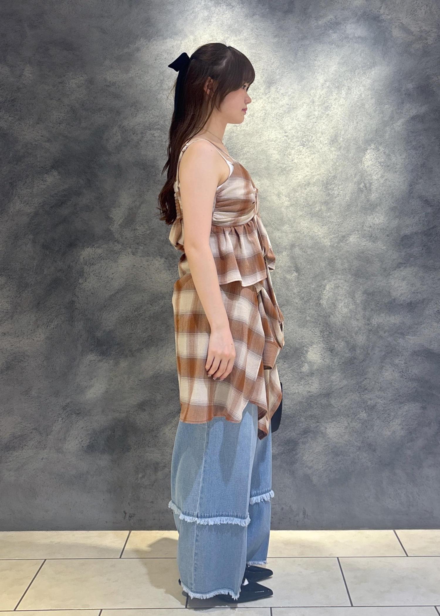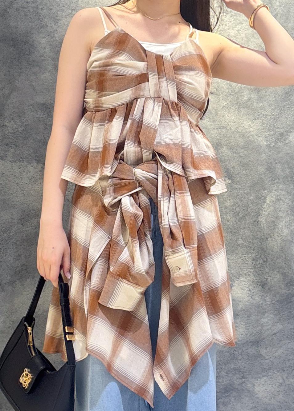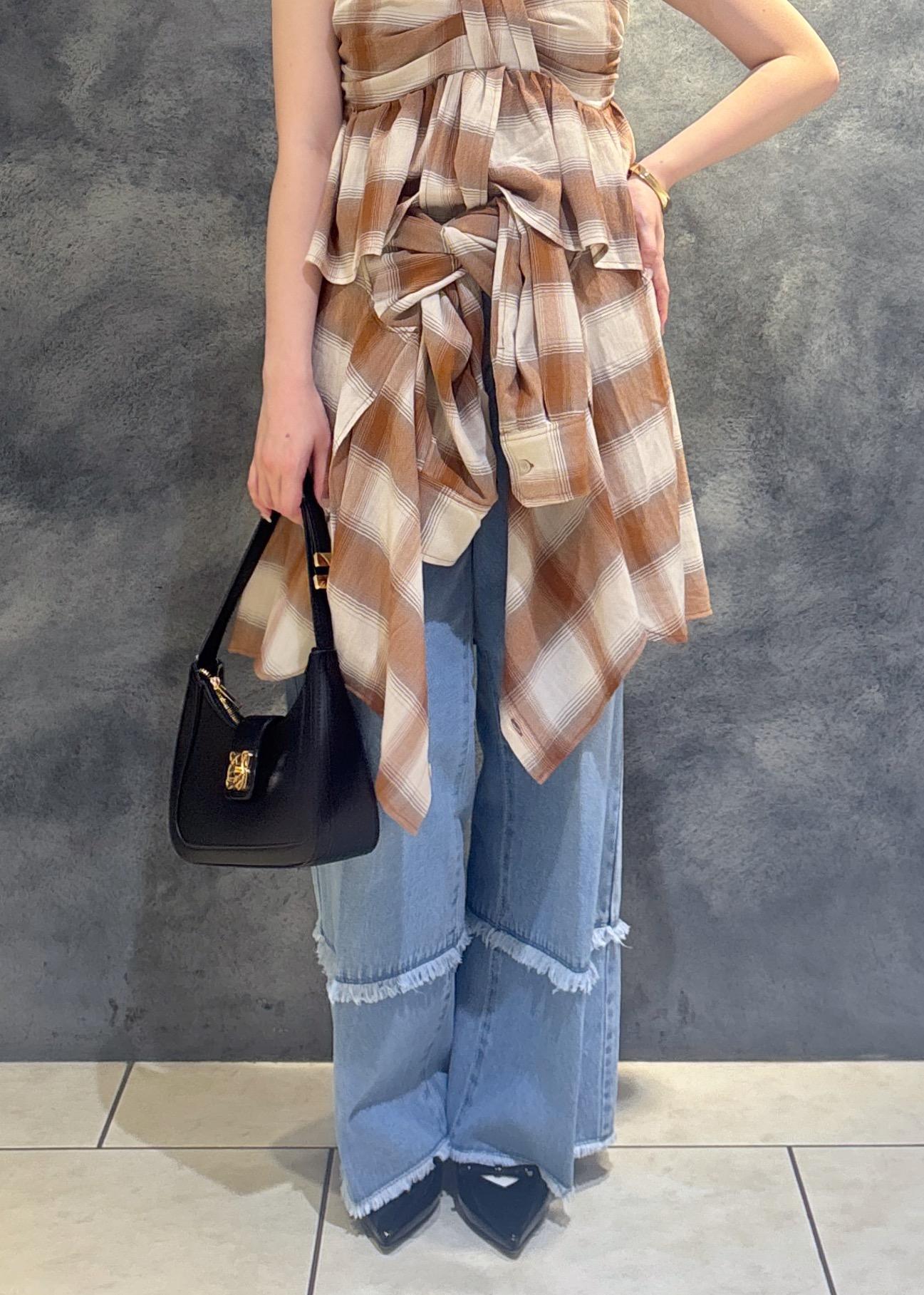 ビスチェの下に、セットアップのシャツを腰に巻くとワンピース風になります!