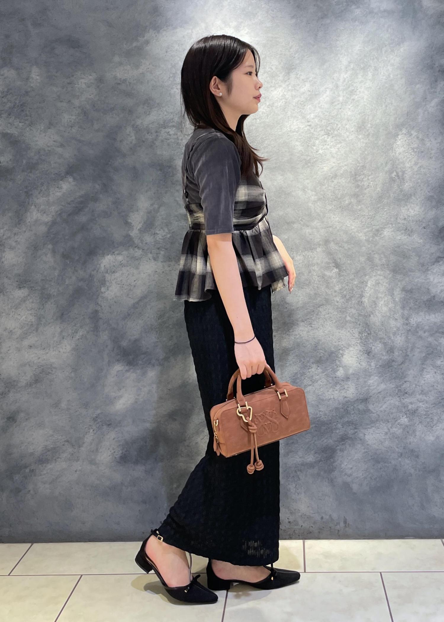 丈感は腰骨が隠れる丈感でコンパクトにきやすいです。肩紐で長さ調整ができるのが嬉しいポイント!