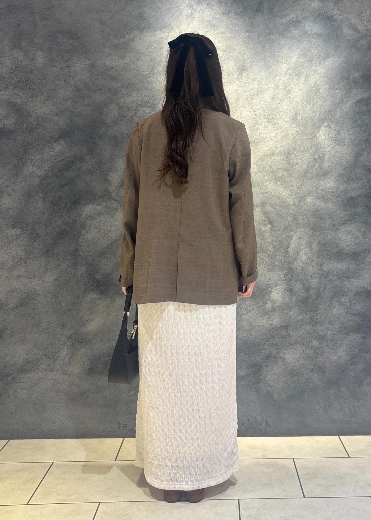 ブラウンのジャケットにブラックの小物を合わせて、秋っぽいコーデにしました!