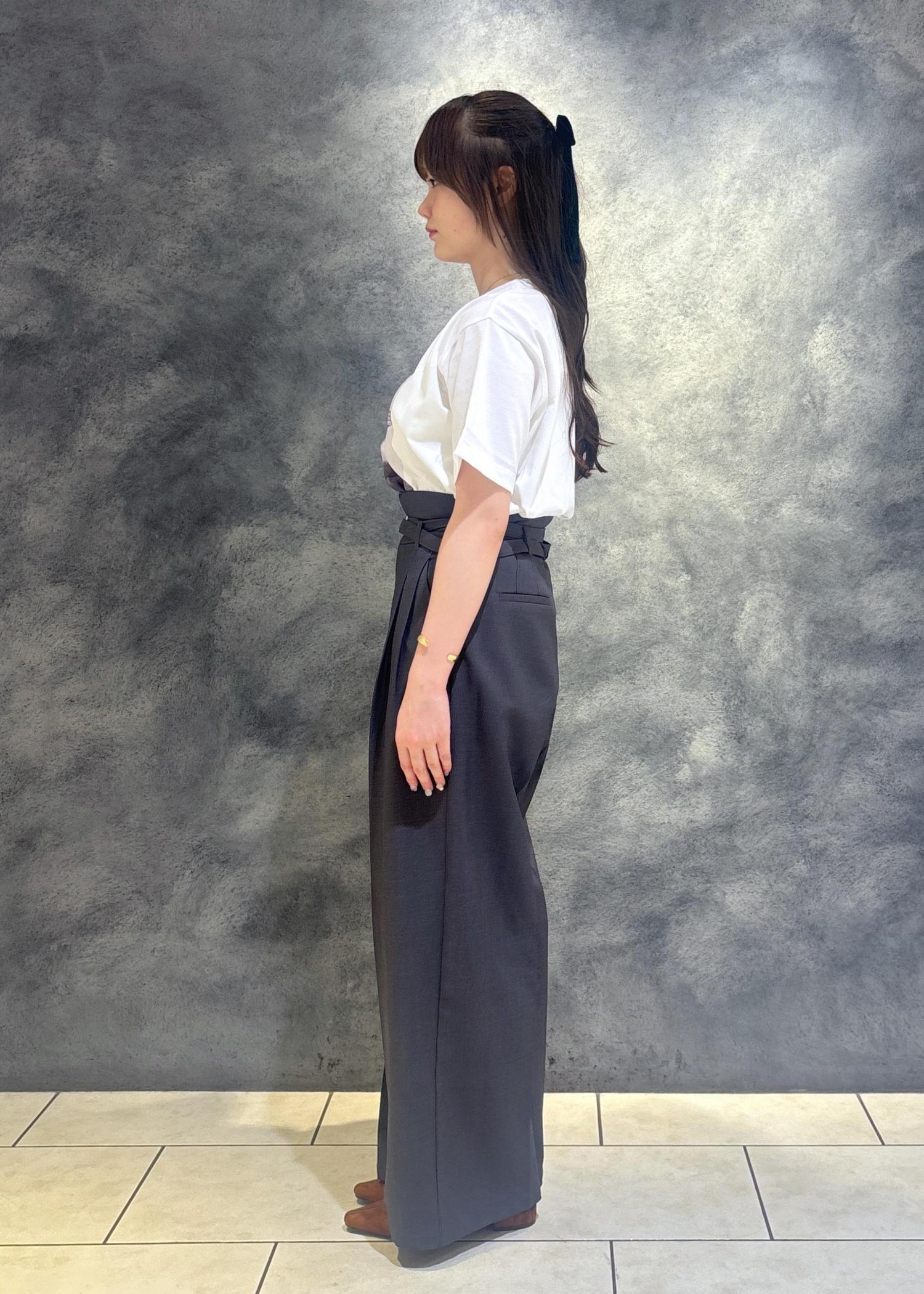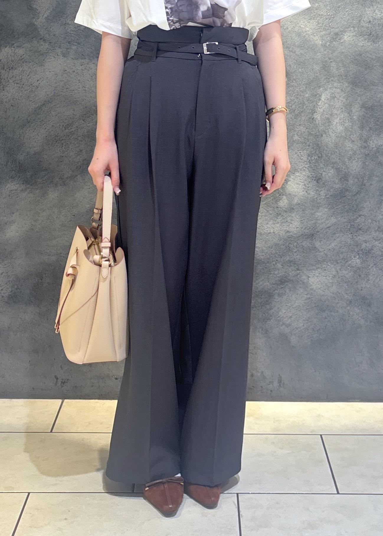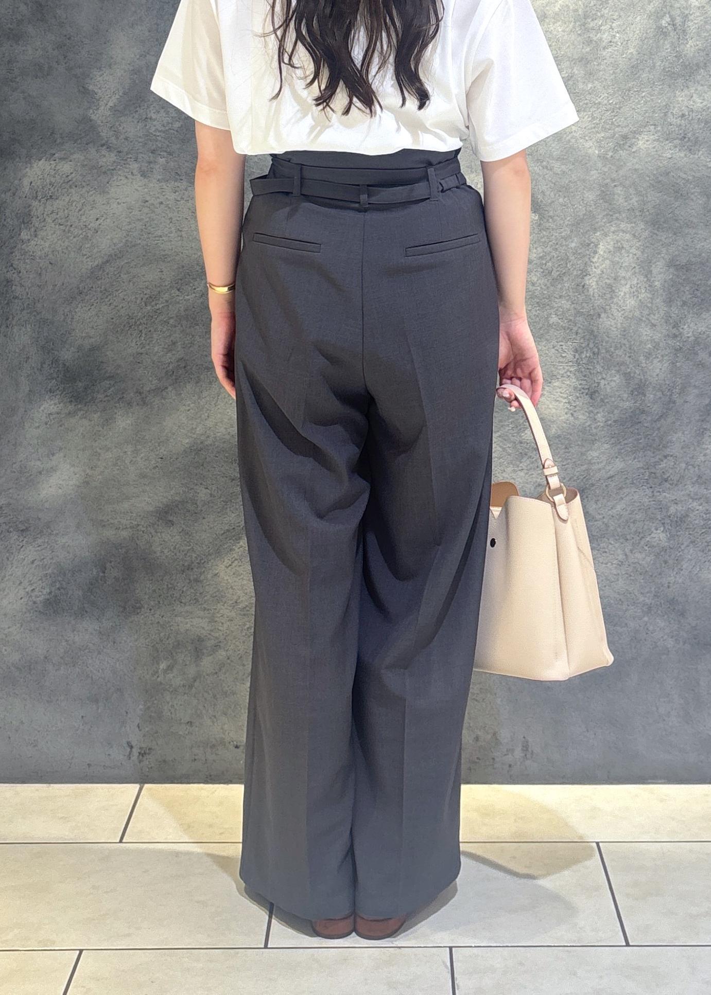 VIS【新色追加】【防シワ/接触冷感】ベルトディテールタックワイドスラックスパンツチャコール / S¥6,589レビュー155センチでかかとに少しかかるくらいの長さです!