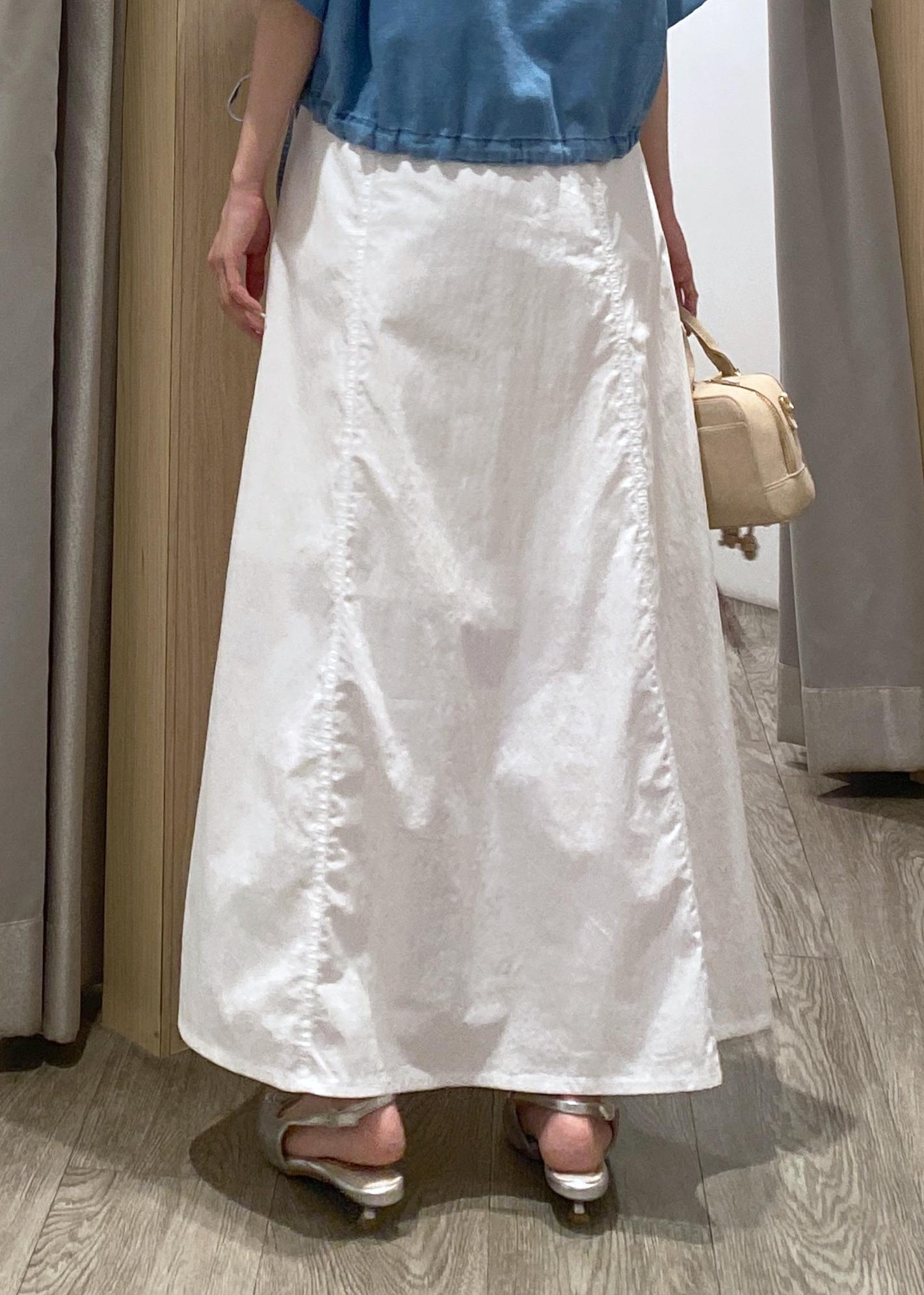裾にかけて広がるフレアシルエットなので女性らしく履けるスカートです。