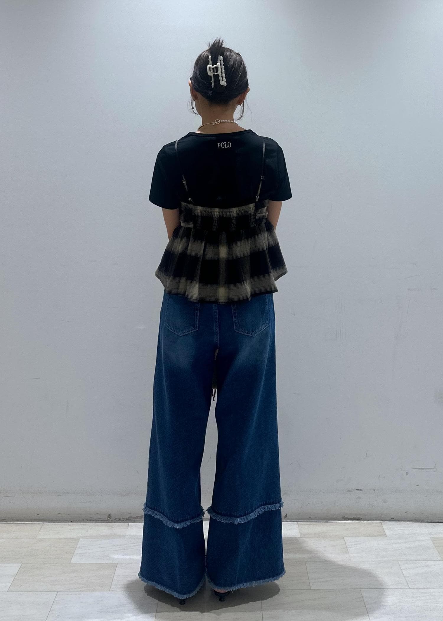 VISフリンジフレアデニムブルー系 / M¥4,395レビュー美脚効果が高いフレアシルエットと、フリンジデザインが今年らしいアクセントに。
