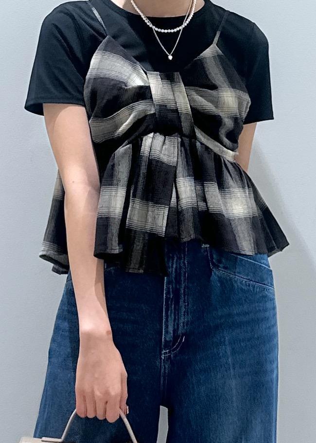 VISオンブレチェックリボンビスチェブラック系 / F¥5,489レビューオンブレチェックが映える、ねじれリボンデザインのビスチェ⋈*。゚