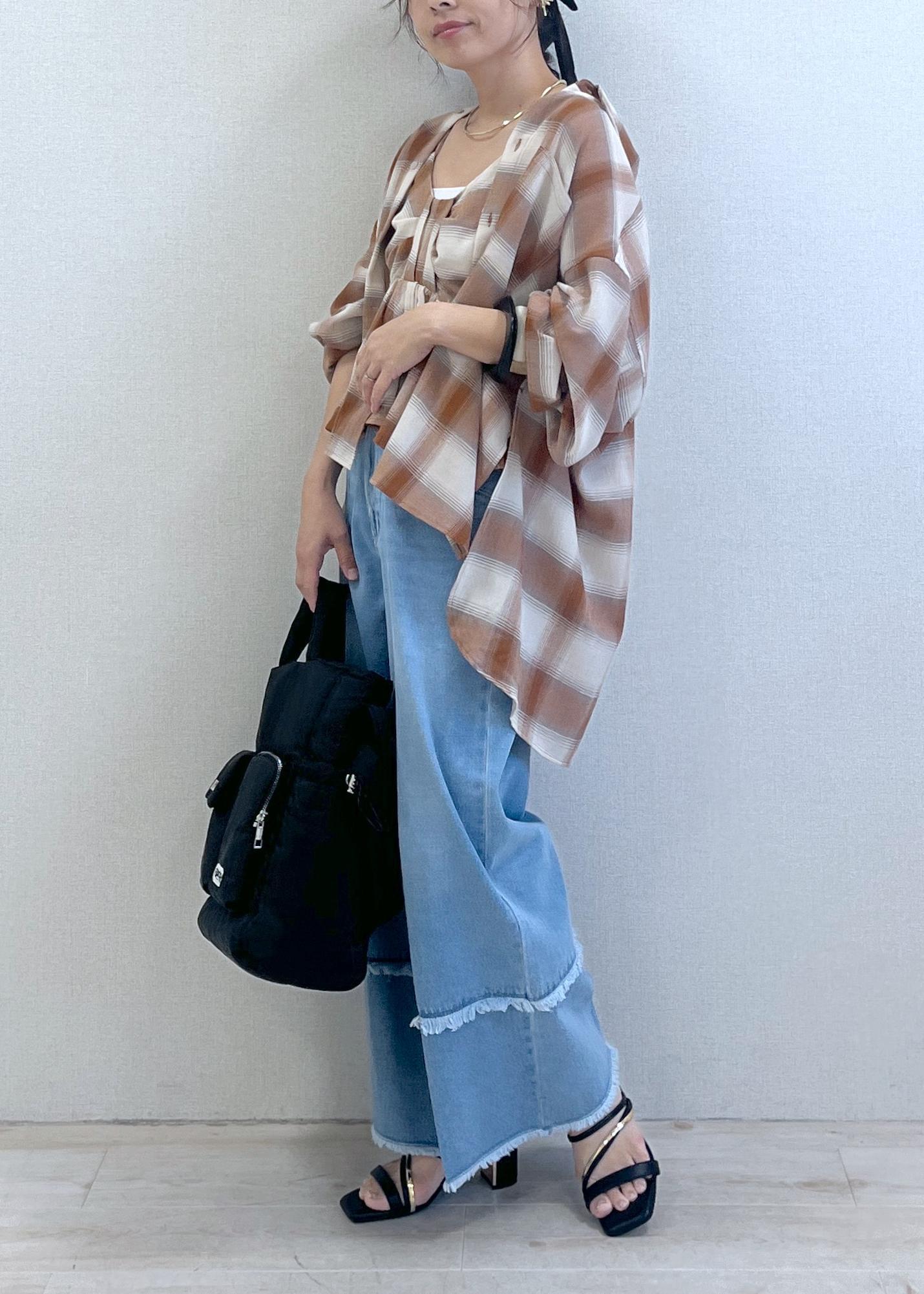 ゆるシャツ×フリンジデニムの大人カジュアル