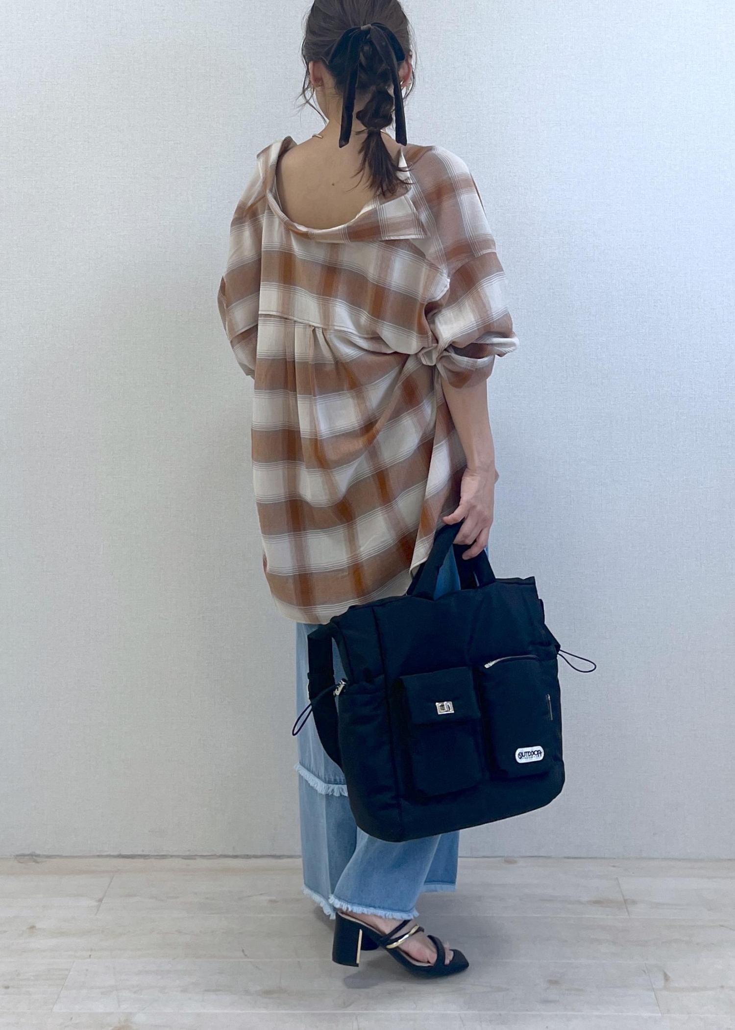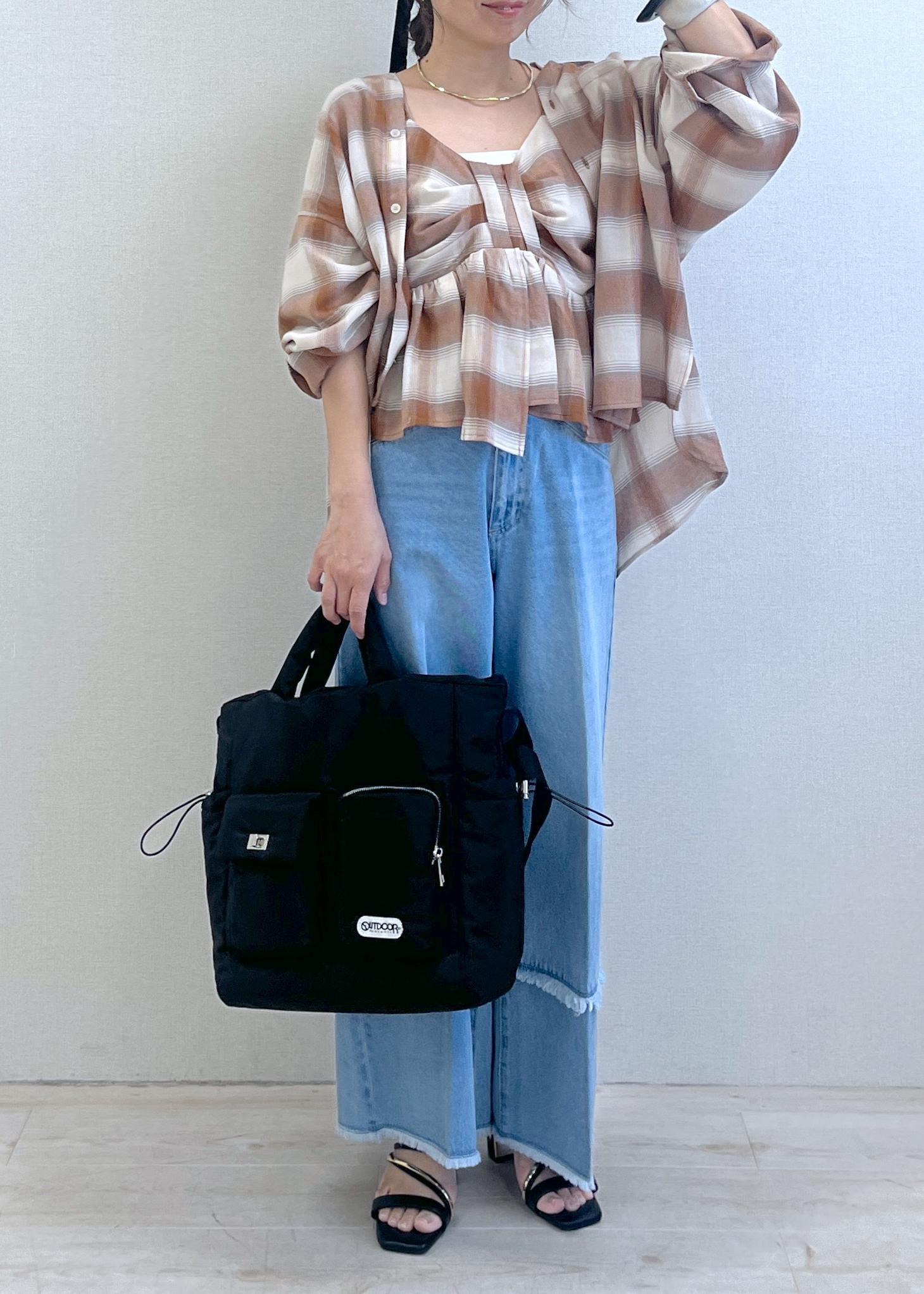 とにかく軽くて大容量!A4サイズの書類もしっかり入れられます。ショルダーも付いているので斜めかけも◎スタイリングによって、カジュアルにもキレイめにも使える万能バッグ!しかもoutdoorとのコラボです♡