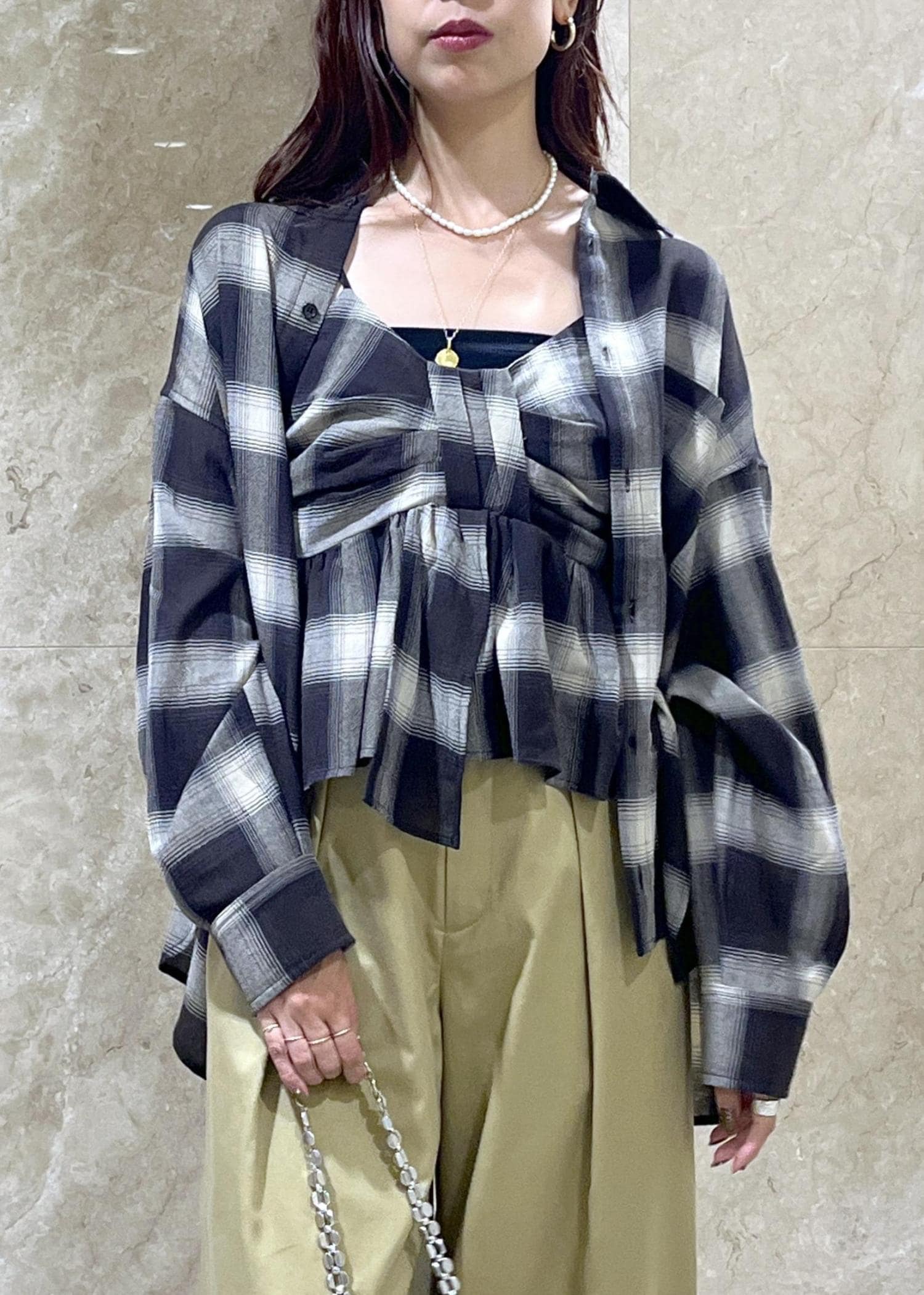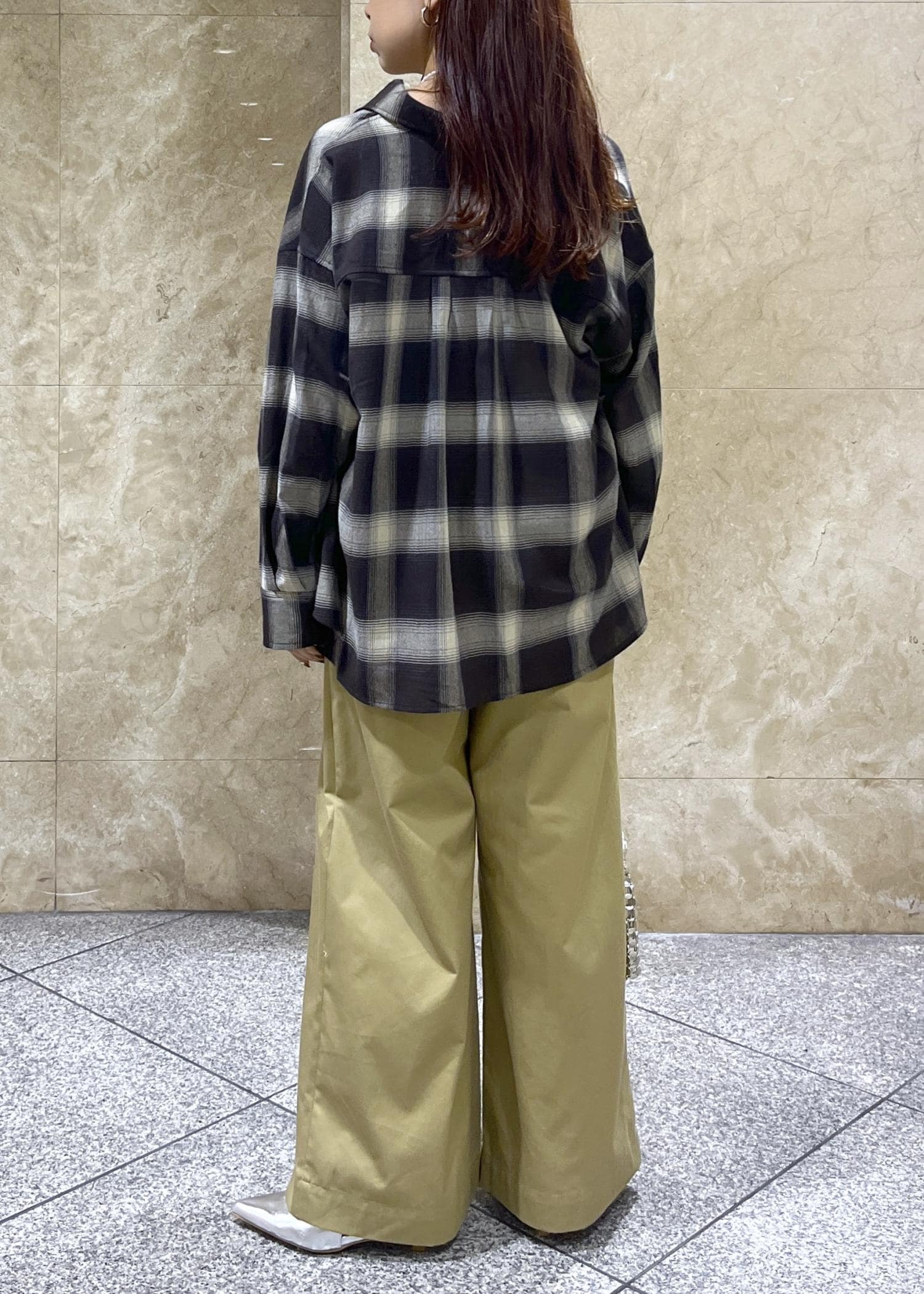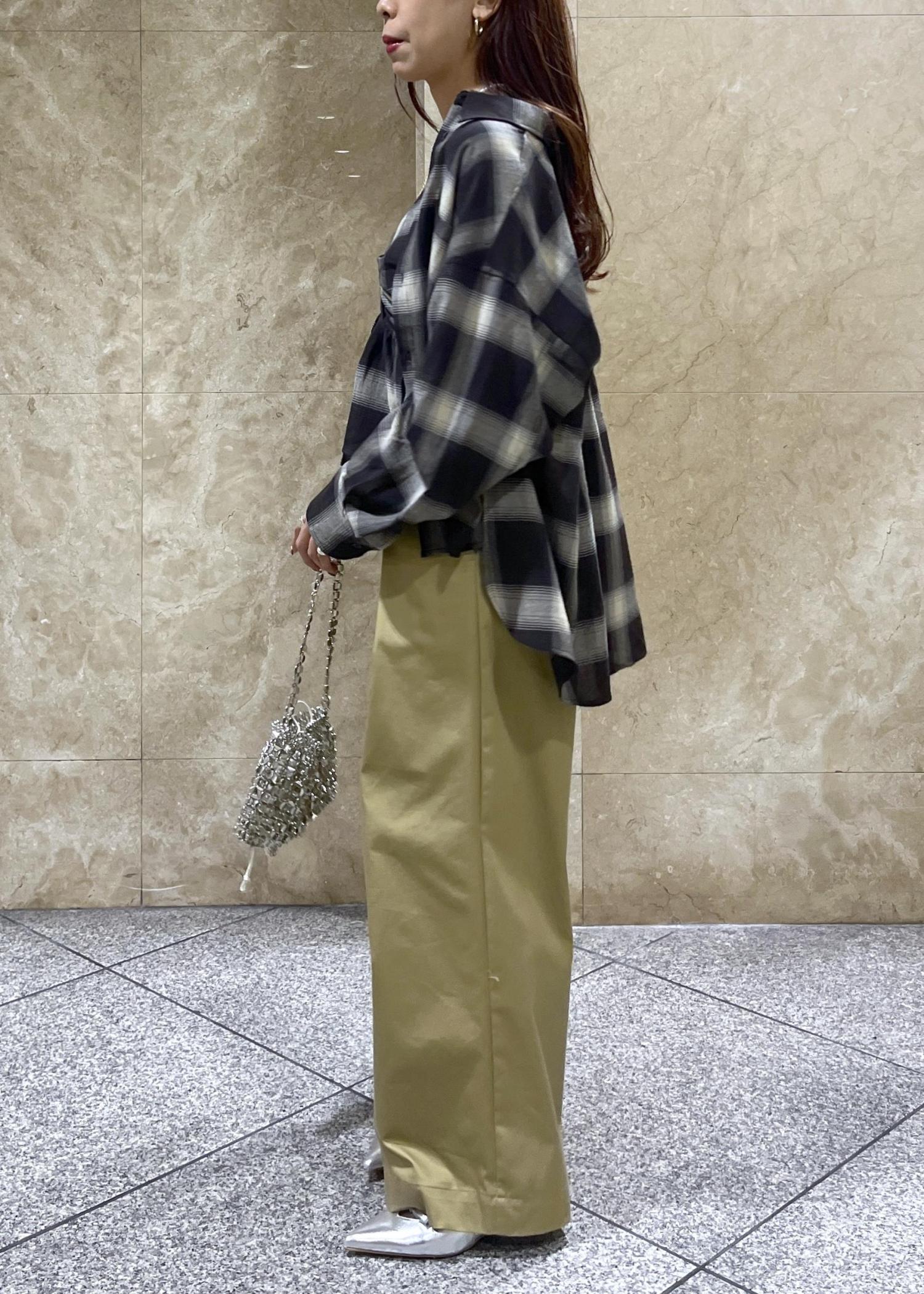 身幅はほどよいゆとりがあるため、写真のコーディネートではインナーはキャミソールですが、Tシャツやシャツなども中に着られそう◎