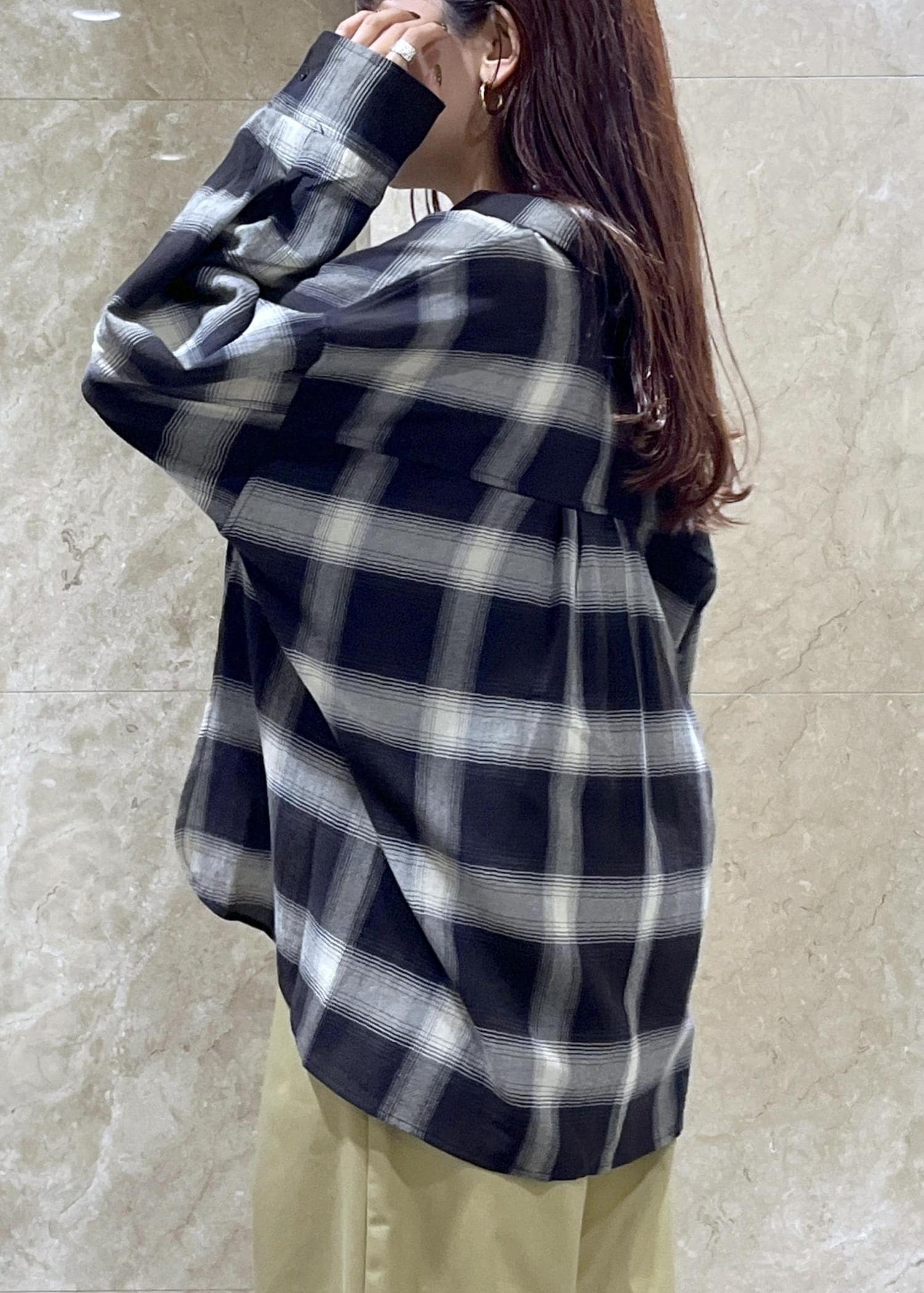 柄がアクセントになるため羽織るもよし、腰巻きもよし、ベーシックなシルエットゆえに着回しの幅も広くコーディネートが楽しい ♪