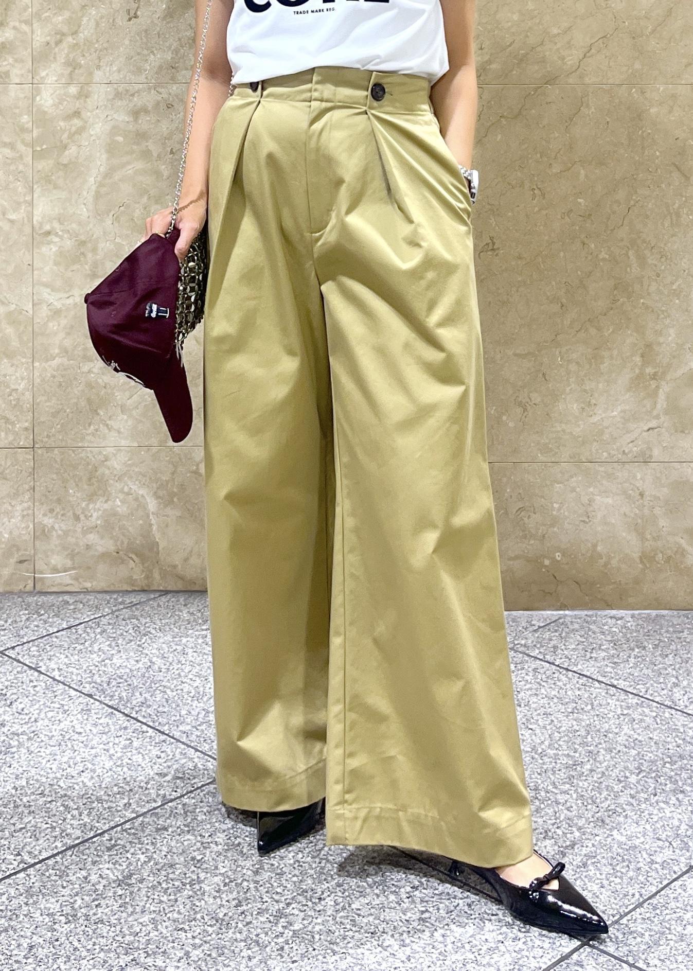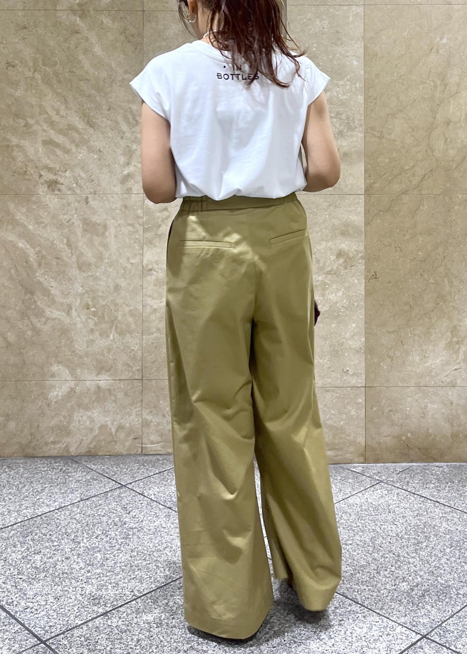 長めのトップスや羽織りと合わせると安心感もあり、インナーをインにしておけば、ウエストのボタンがワンポイントとなり腰位置を高く見せてくれるため、腰まわりをカバーしながらもスタイルもキープできます◎ -