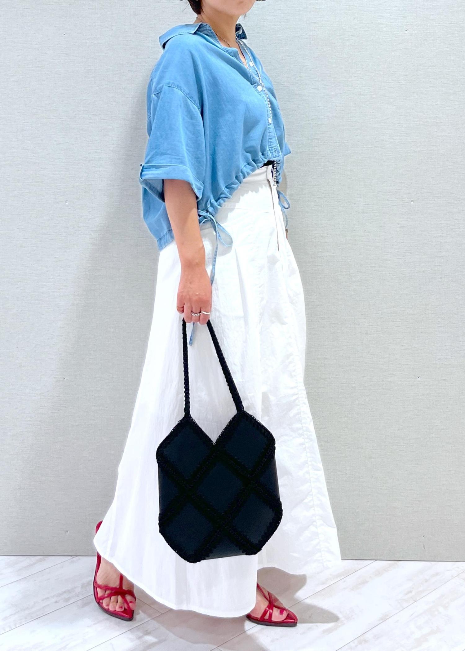 少しシャカシャカとシャリ感も効いていて、色々なトップを合わせてお楽しみ頂けます。 -
