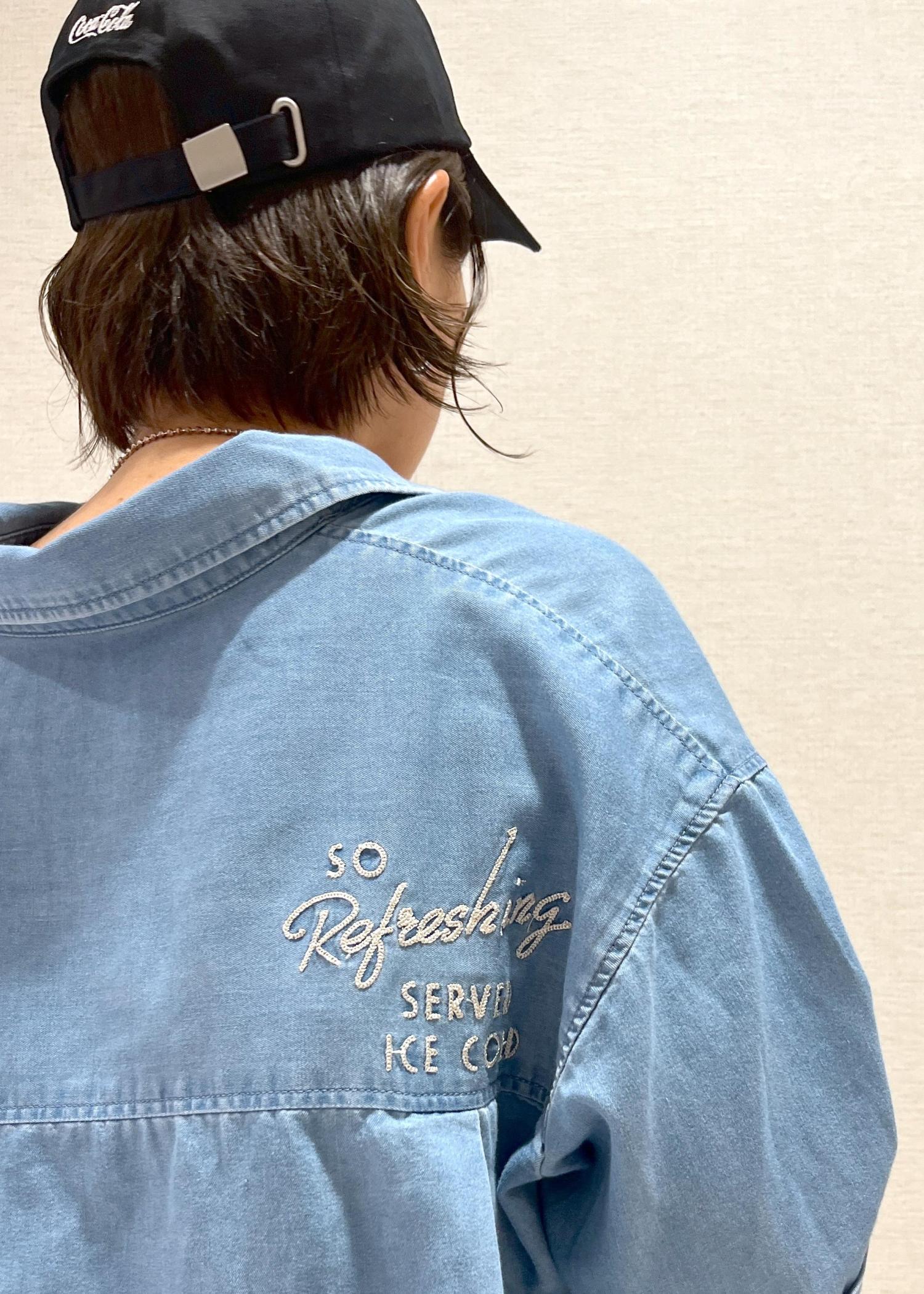 VIS【Coca-Cola】VIS別注バックエンブロイダリークロップドシャツブルー系 / F¥5,390レビュー柔らかいデニムシャツで肌触りよく着て頂けます。