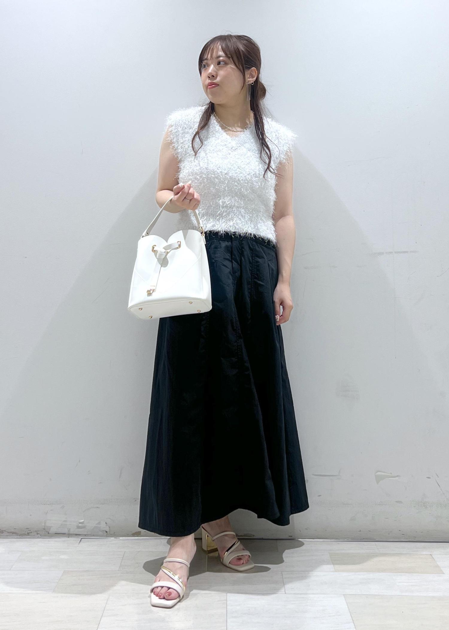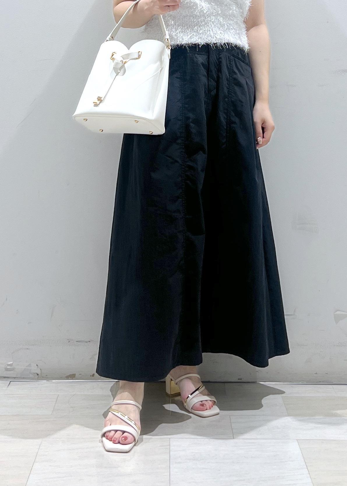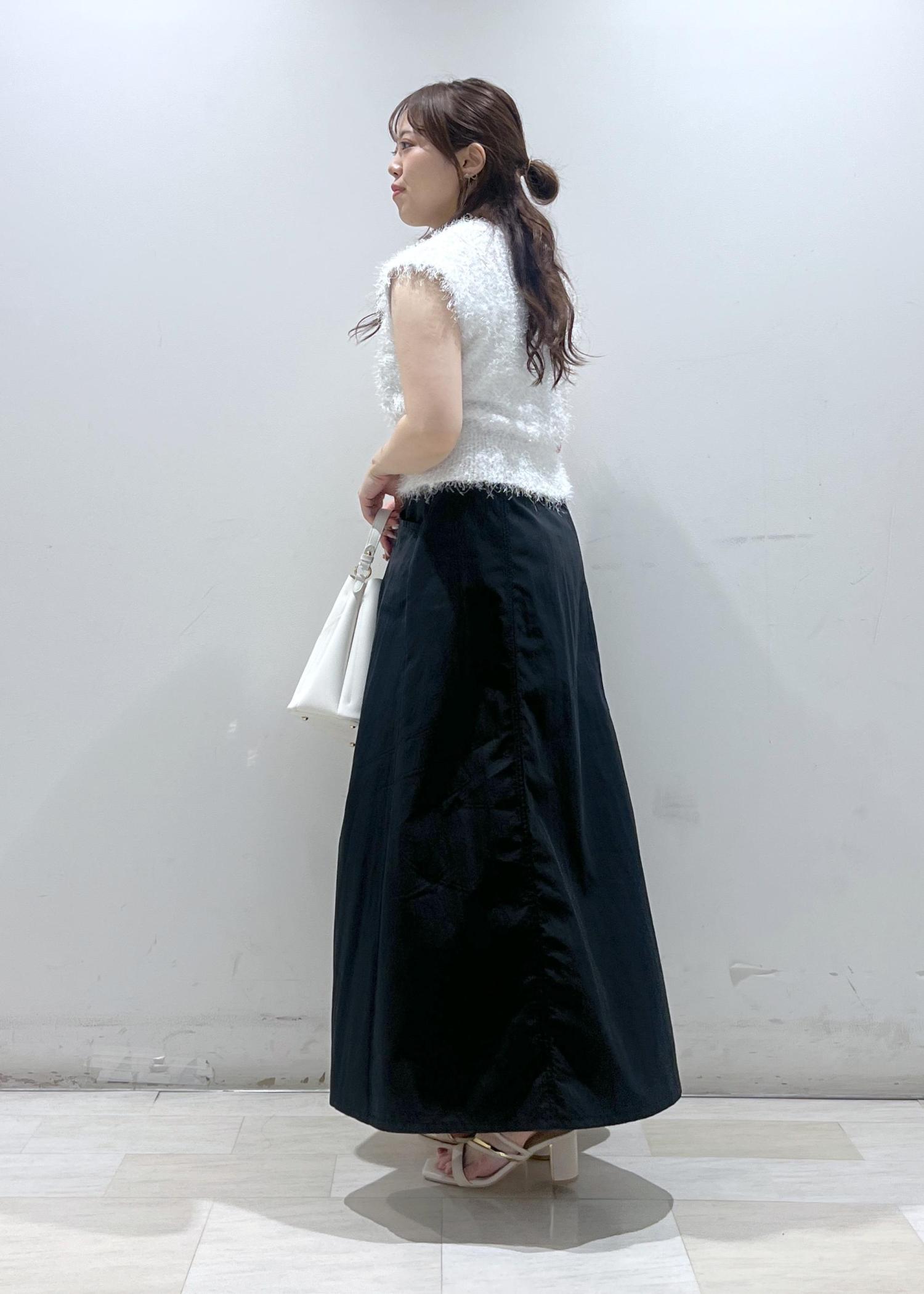 ナイロンスカートを合わせて少しカジュアルダウンさせた、夏〜初秋におすすめのおでかけスタイルです♪