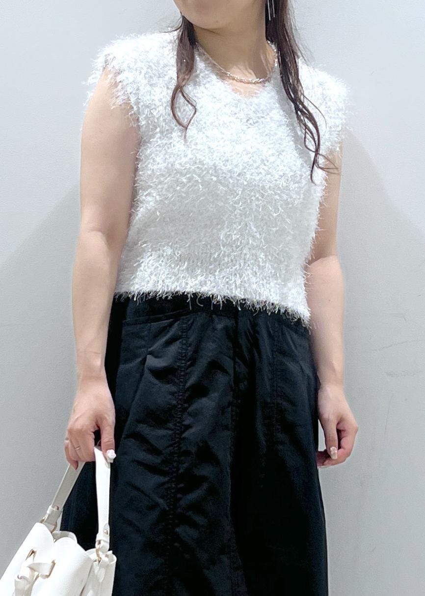 フェザーヤーンの素材感が今時期から一歩先の秋らしい雰囲気を楽しめるニットベスト!
