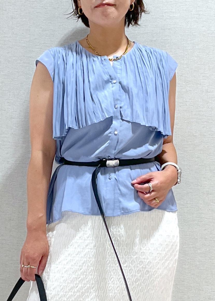 柔らかな落ち感のあるブラウスで肩から胸元までのプリーツデザインが大人かわいいです。