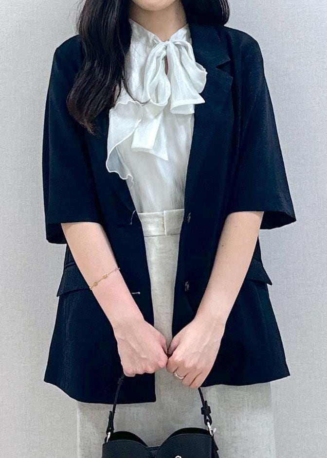 VIS【美easy】ハーフスリーブジャケット/セットアップ対応・洗えるネイビー / S¥7,909レビュー身長157cmでSサイズを着用しています。オーバーサイズのつくりなので、Sサイズでもゆったりと着られます。