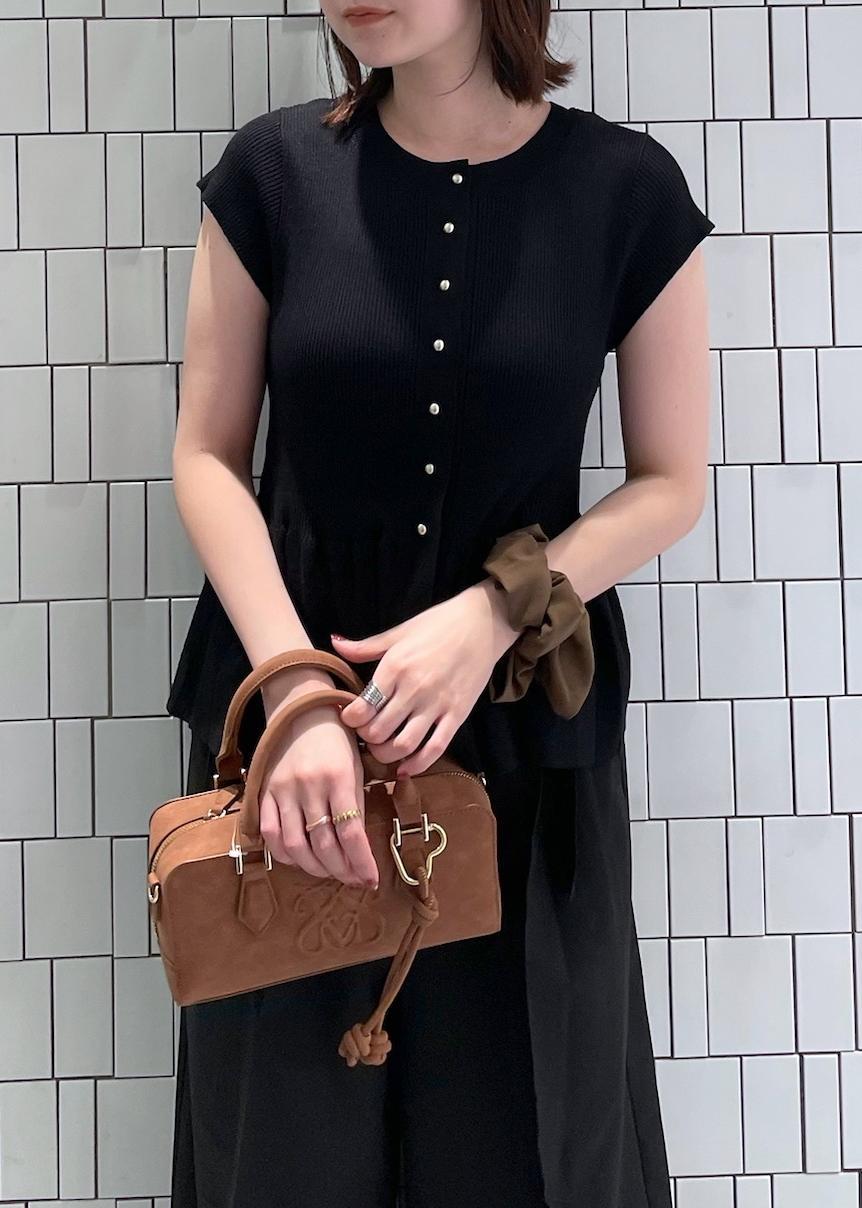 ペプラムのふんわり感とブラウンの柔らかさで