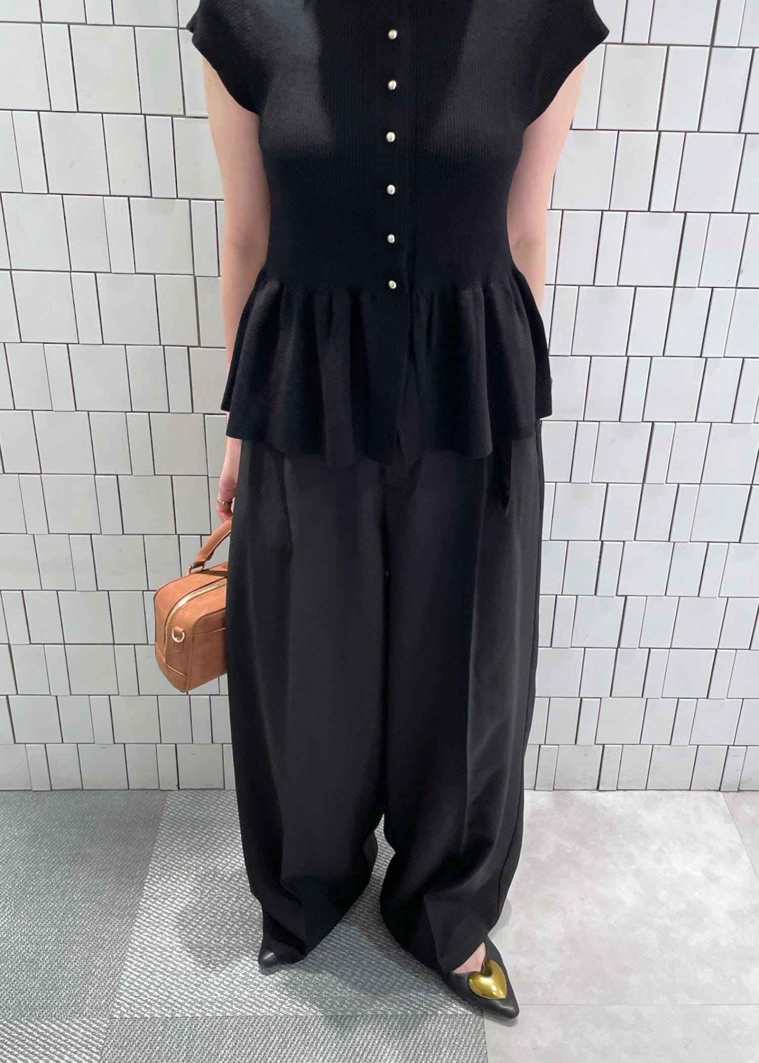 VIS【アンチピリング/洗える】美SMARTショートスリーブペプラムニットブラック / F¥5,489レビューフィットするサイズ感ですがリブニットでボディラインを綺麗に見せてくれます❤︎ペプラムで腰回りはカバー、メリハリのあるシルエットです!袖口は広めなので脇部分の汗染みは目立ちにくいです◎