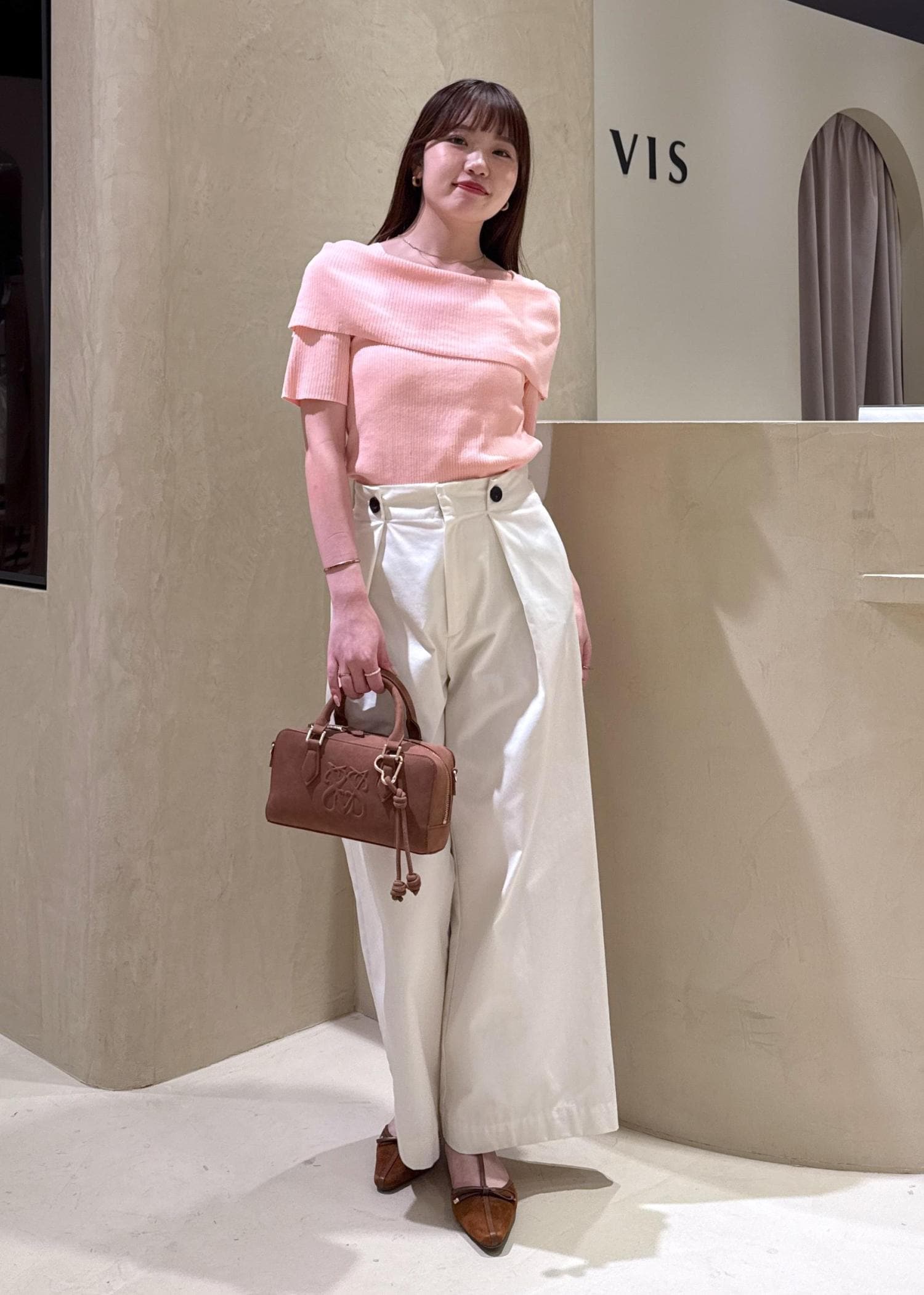 オフショルダーの肩の部分はマチがついているため落ちてきません◎!