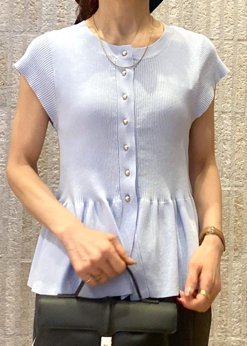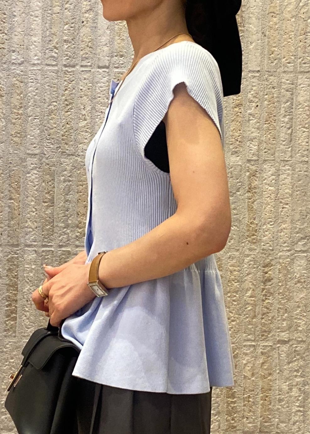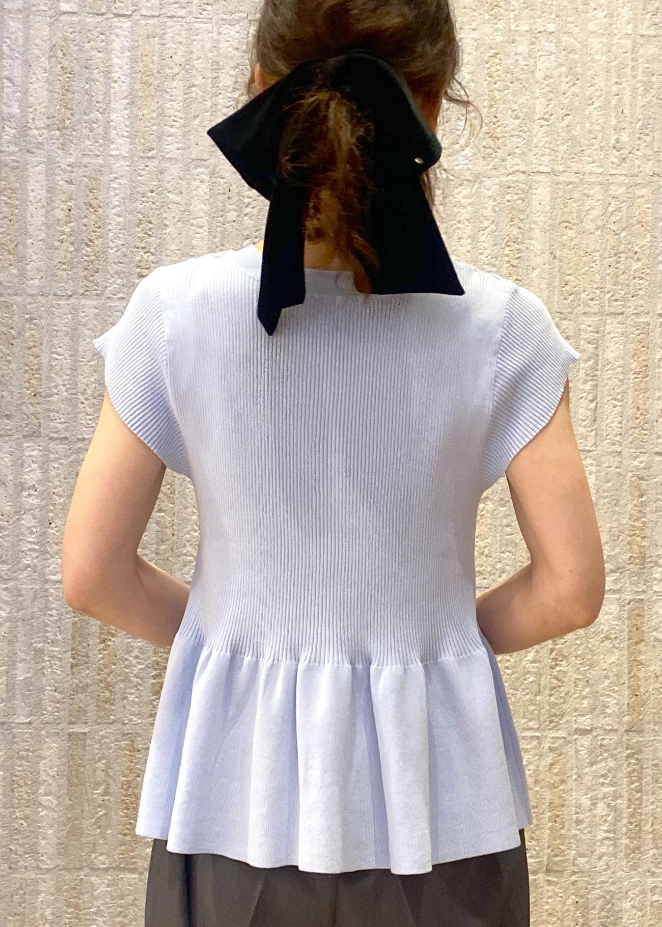 VIS【アンチピリング/洗える】美SMARTショートスリーブペプラムニットサックス / F¥5,489レビューサラッとした着心地と程よいリブのニットカーデでスタイル良く見えます♪