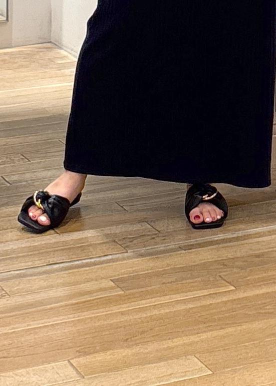 アウトレットVISフラットスライドサンダルブラック / S¥3,460レビューペタンコでも足の甲が綺麗に見えるデザインのサンダル。