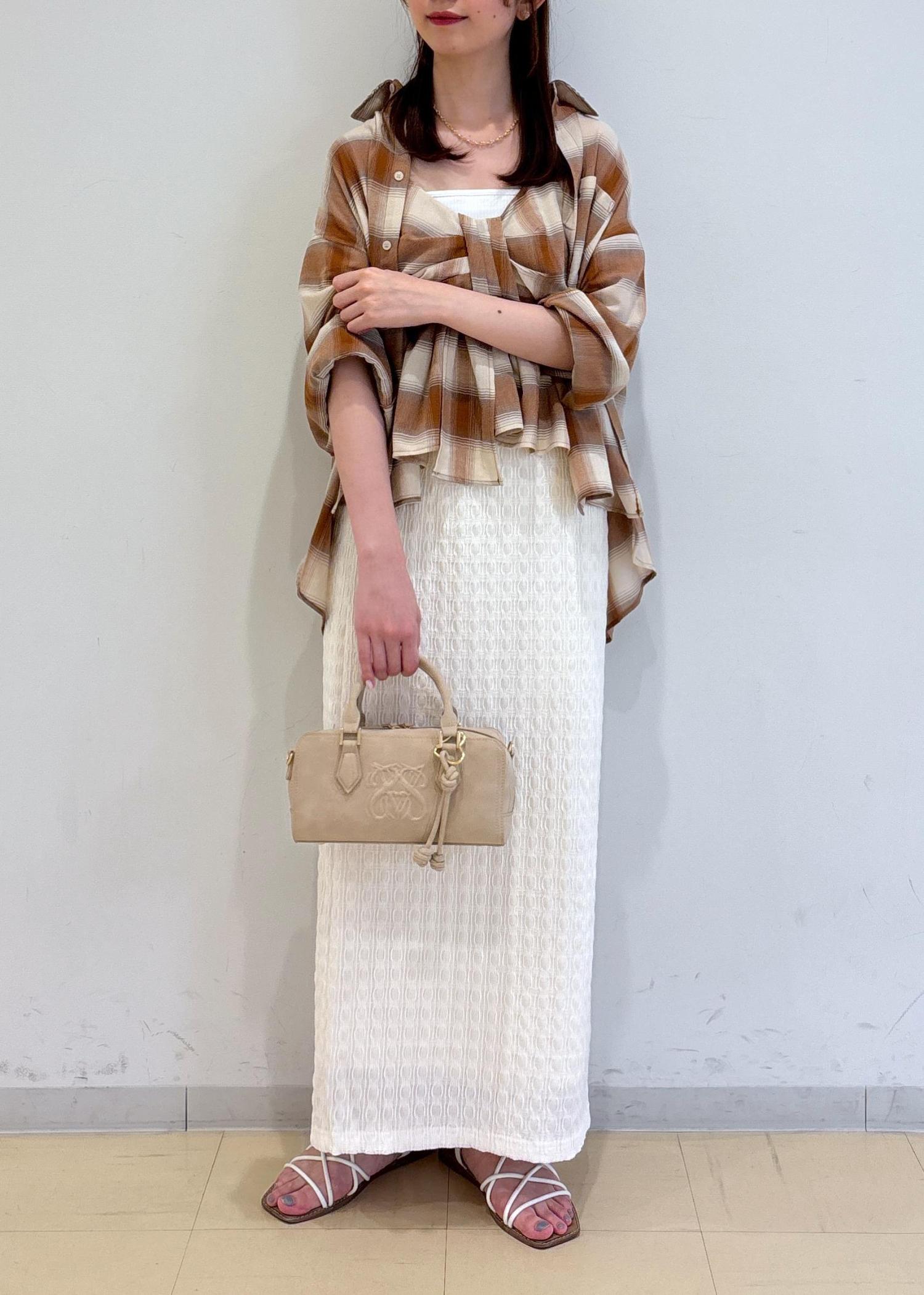 Iラインスカートと合わせて女性らしいフェミニンな印象にしました!