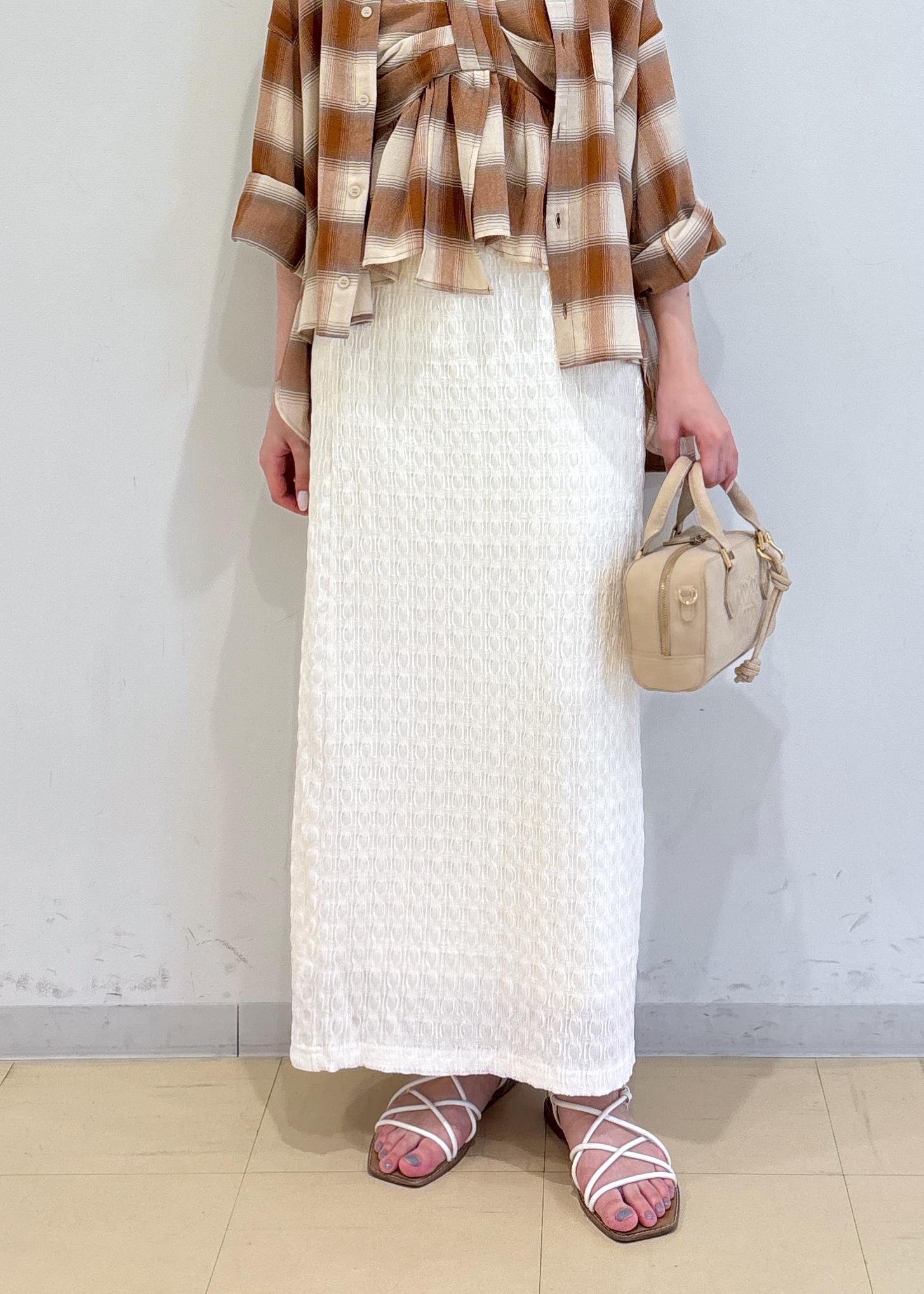 アウトレットVIS【新色追加】【接触冷感】膨れジャガードナロースカートオフホワイト / F¥3,293レビュー163センチで足首隠れるくらいの丈感でした。