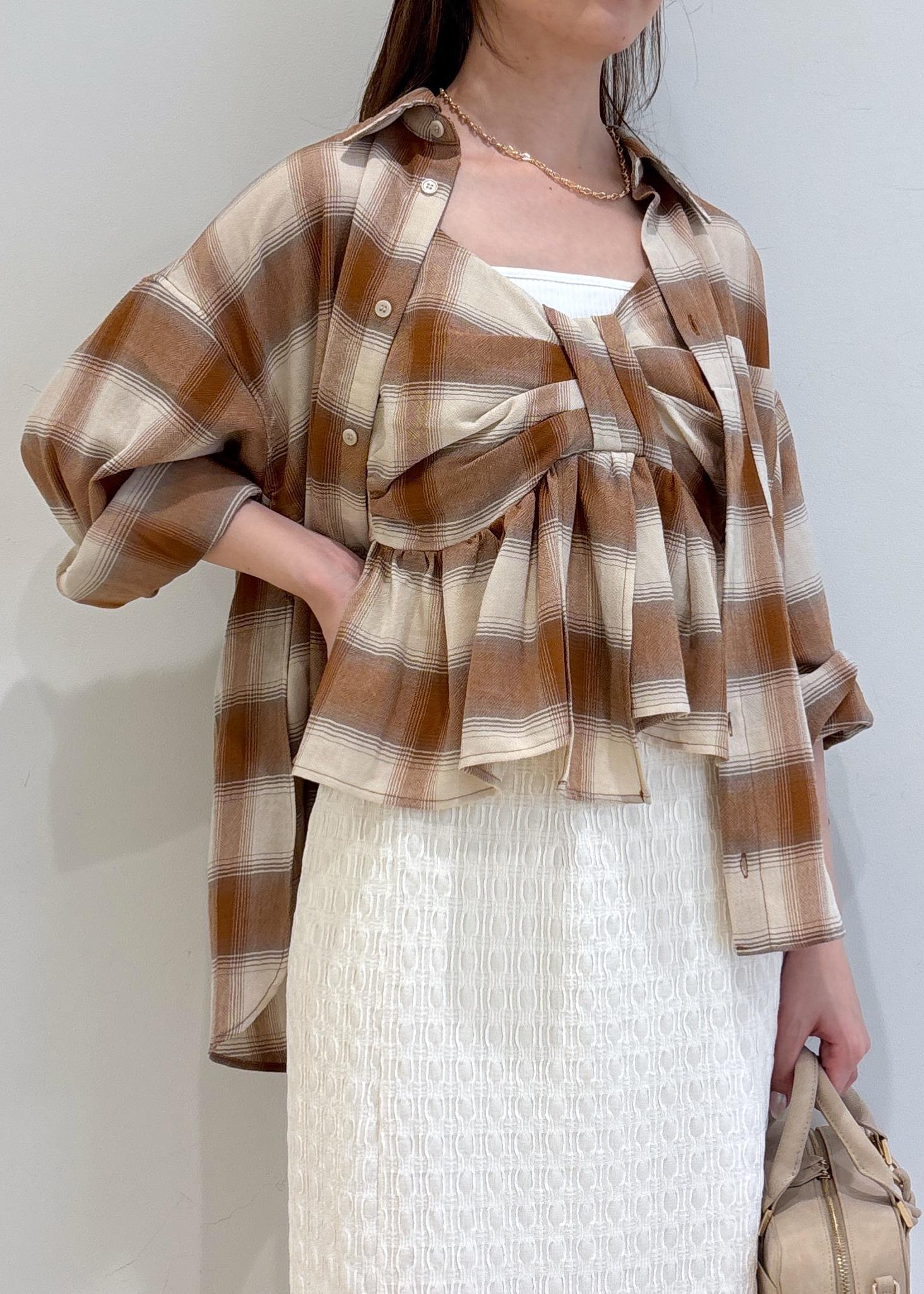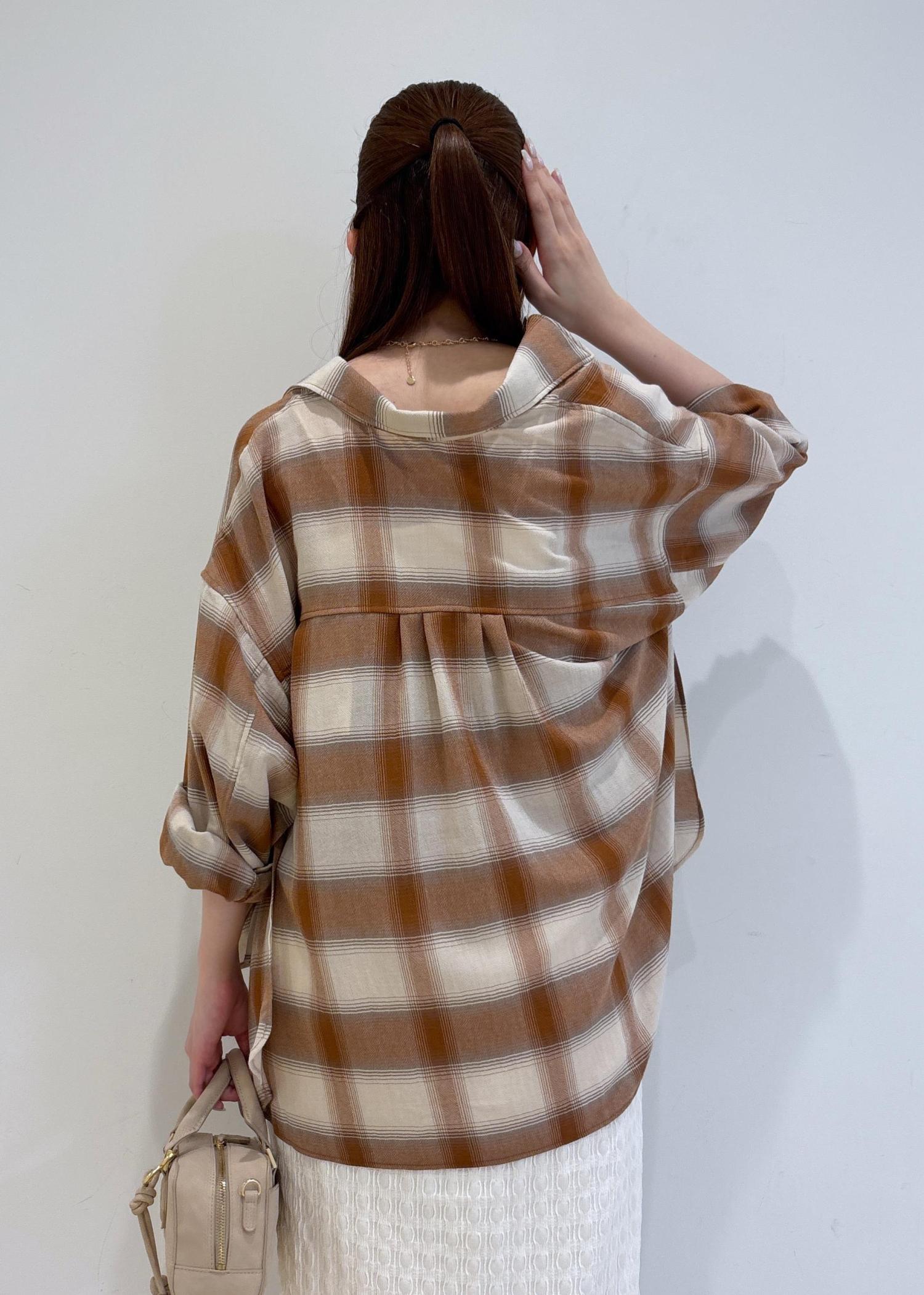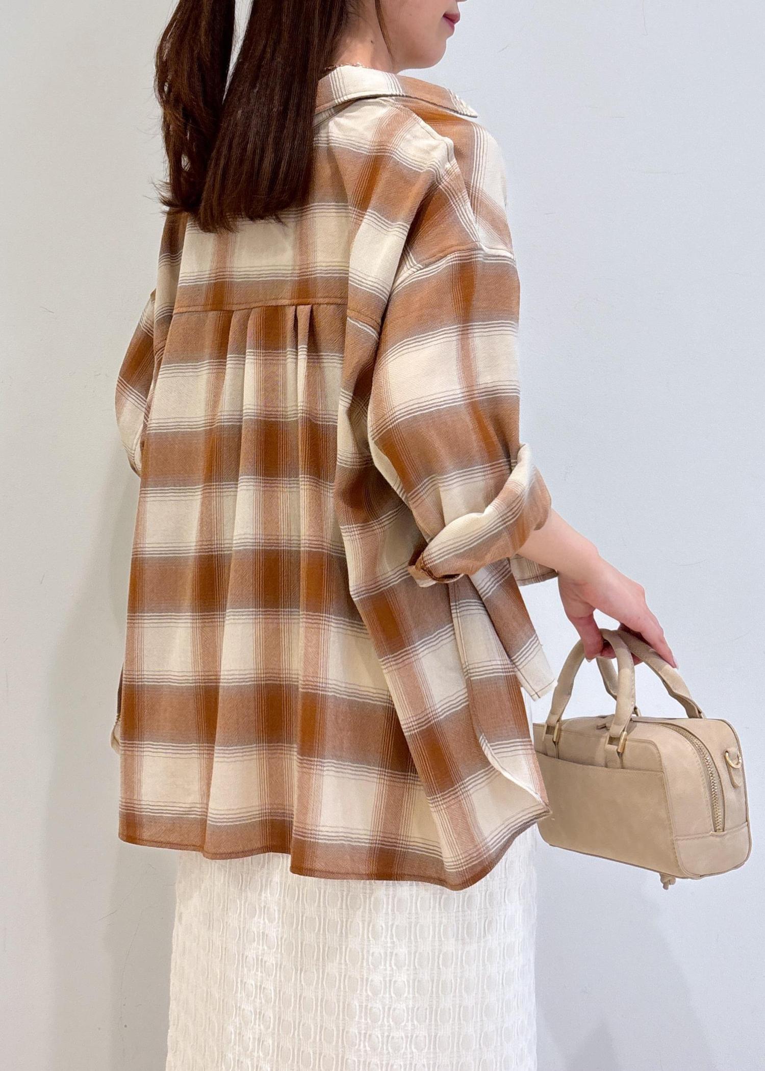 VISオンブレチェックオーバーシャツベージュ系 / F¥5,271レビュー柔らかい素材感で生地も薄めなので軽い羽織心地です。前後差がある丈感で後ろはお尻が隠れるくらいの長さでした。