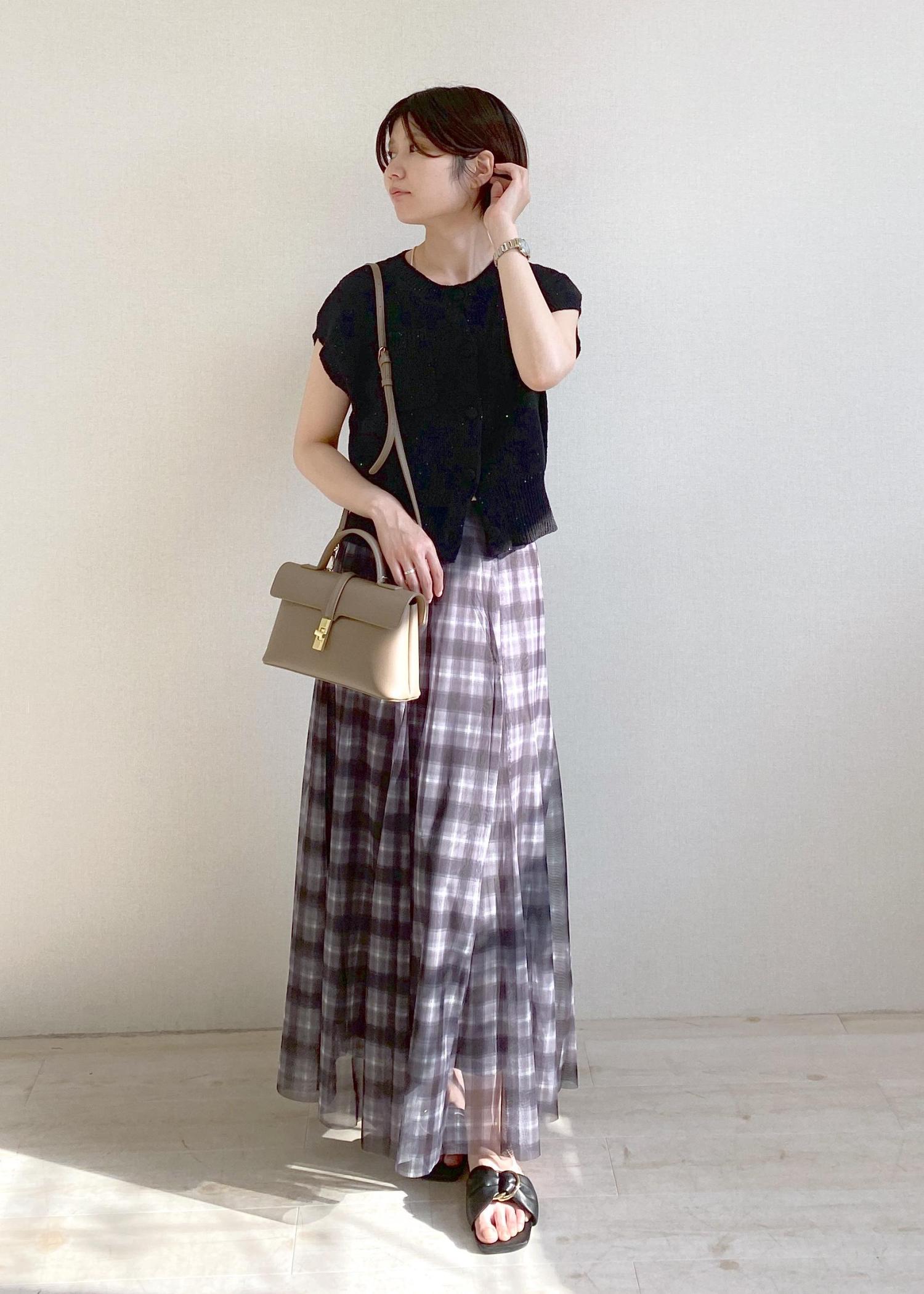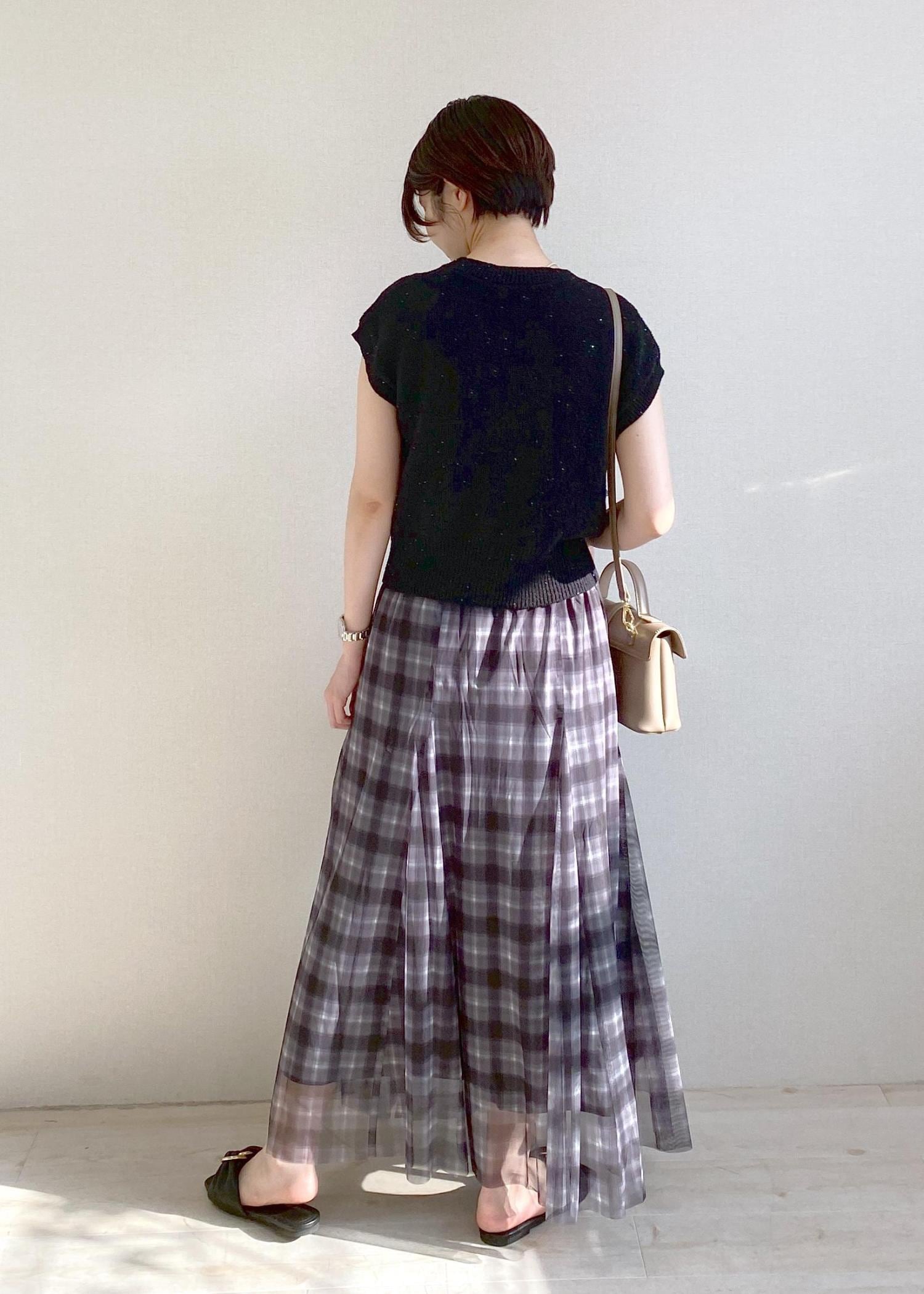 VIS【洗える】チュールプリントチェックスカートブラック系 / F¥4,612レビュー柔らかい肌触りで秋っぽいデザインですが夏の時期でも涼しく着れます。マシンウォッシャブルでお手入れが楽な点が嬉しいです。