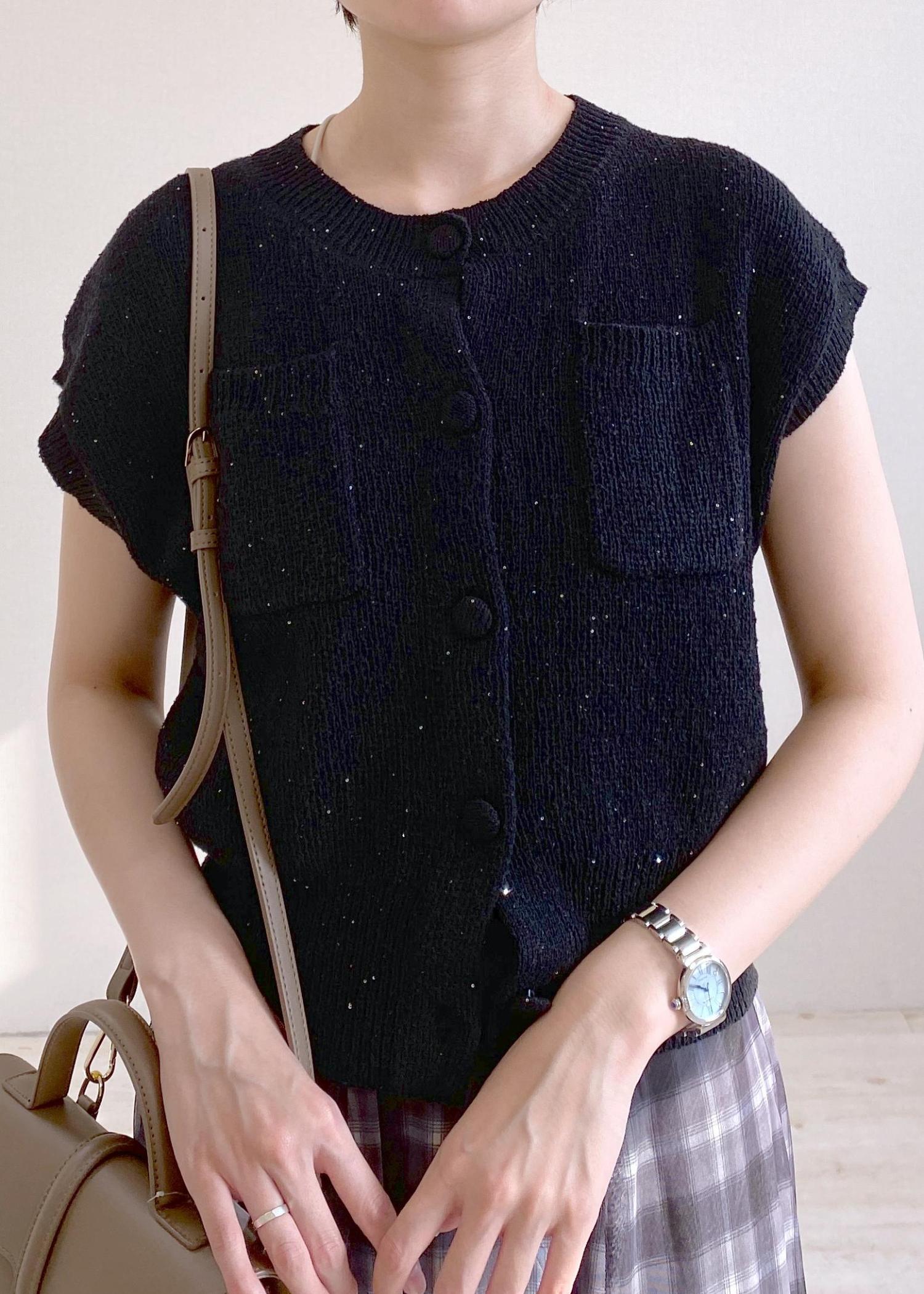 VISくるみ釦ニットトップスカーデ/洗えるブラック系 / F¥4,939レビュー少しラメ感があるのが可愛いです。