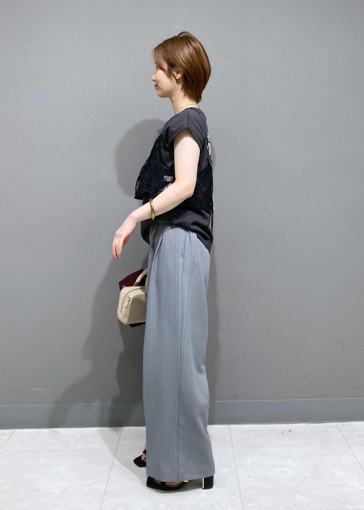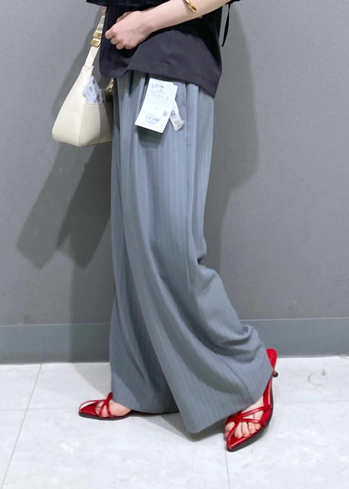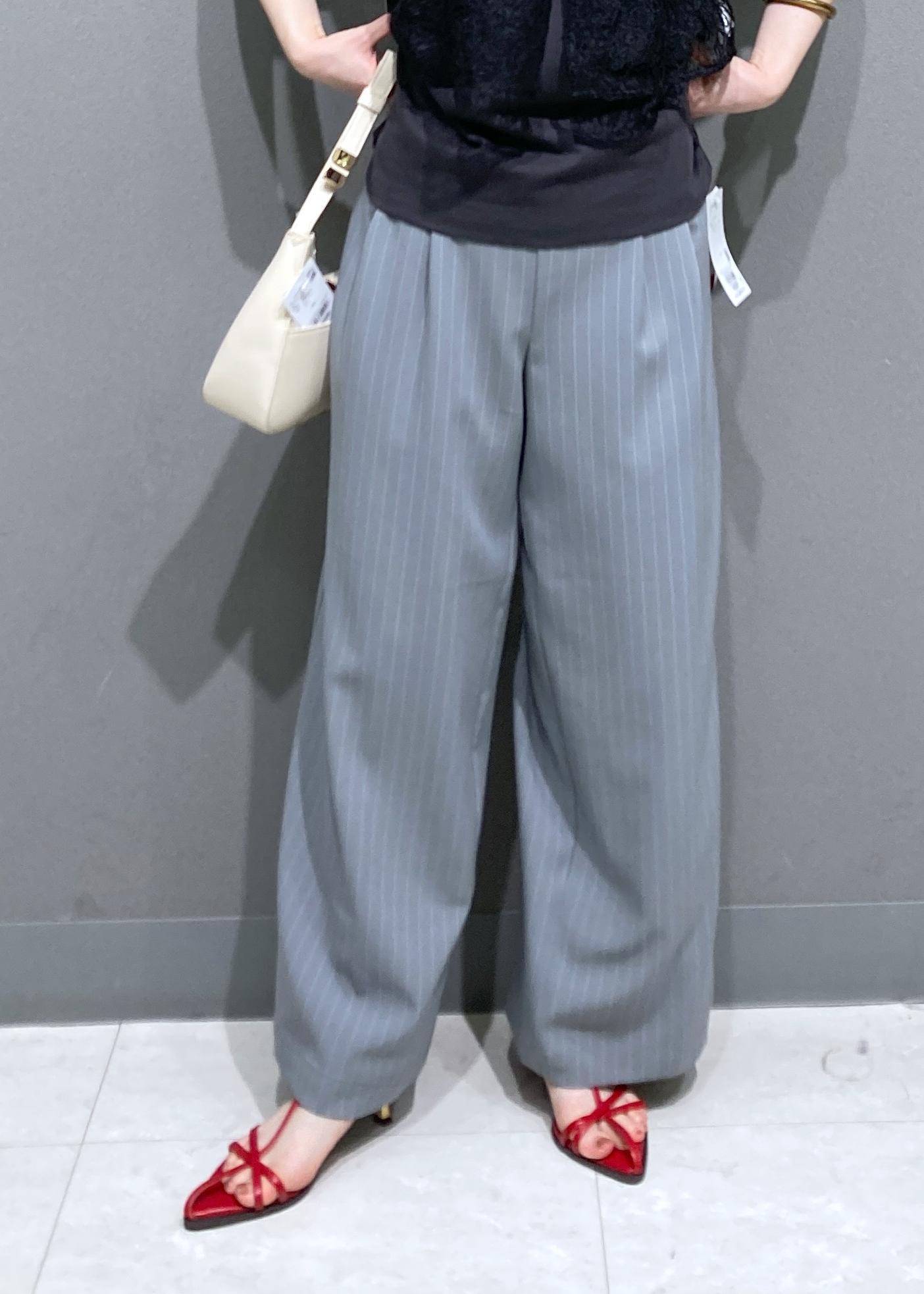 アウトレットVIS【接触冷感/UVケア】ピンストライプリラックスワイドパンツグレー / S¥2,636レビュー150cmでSサイズを着用してヒールを合わせてギリギリ床につかない丈でした。