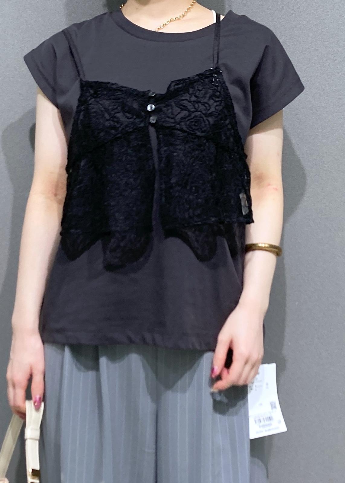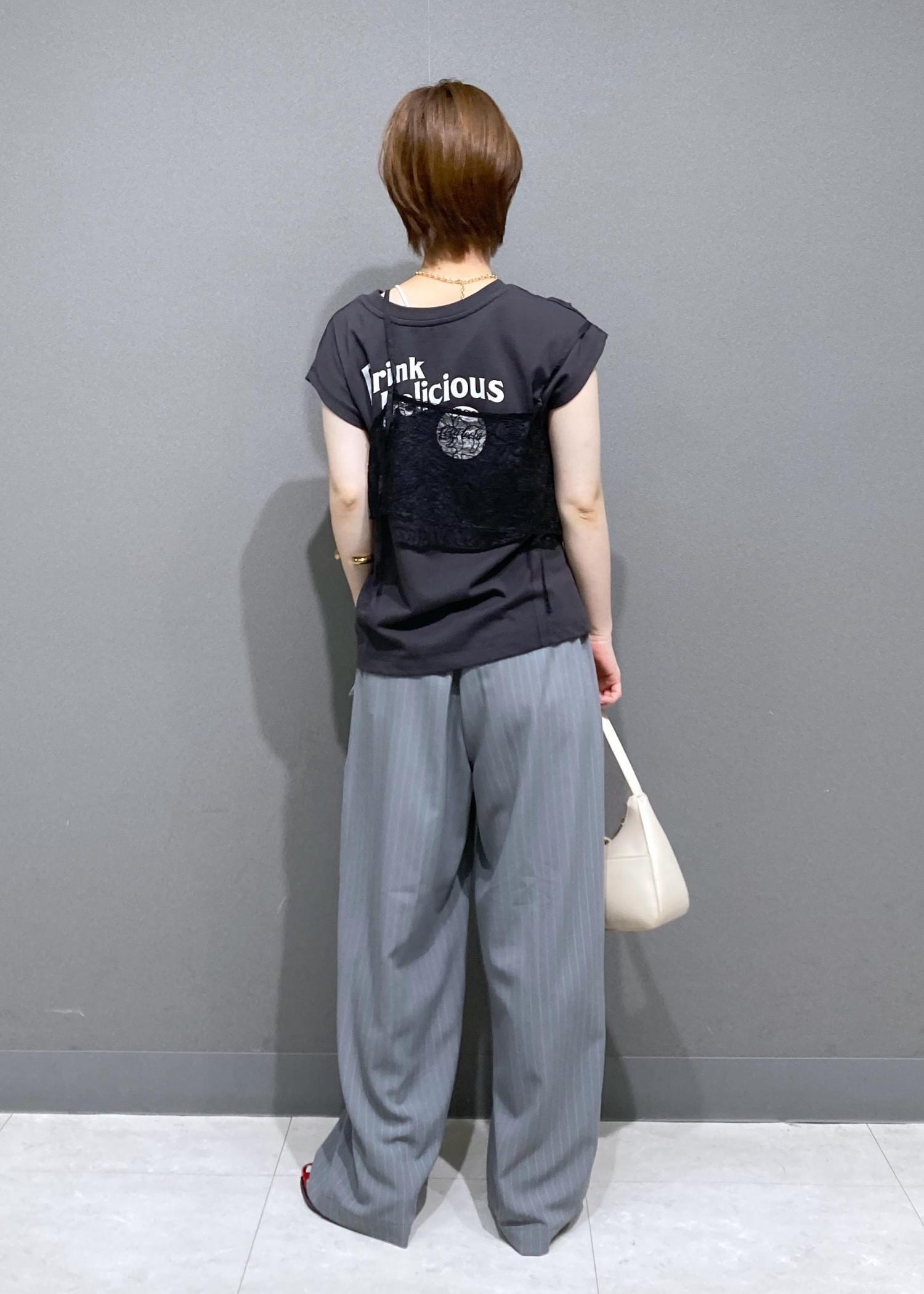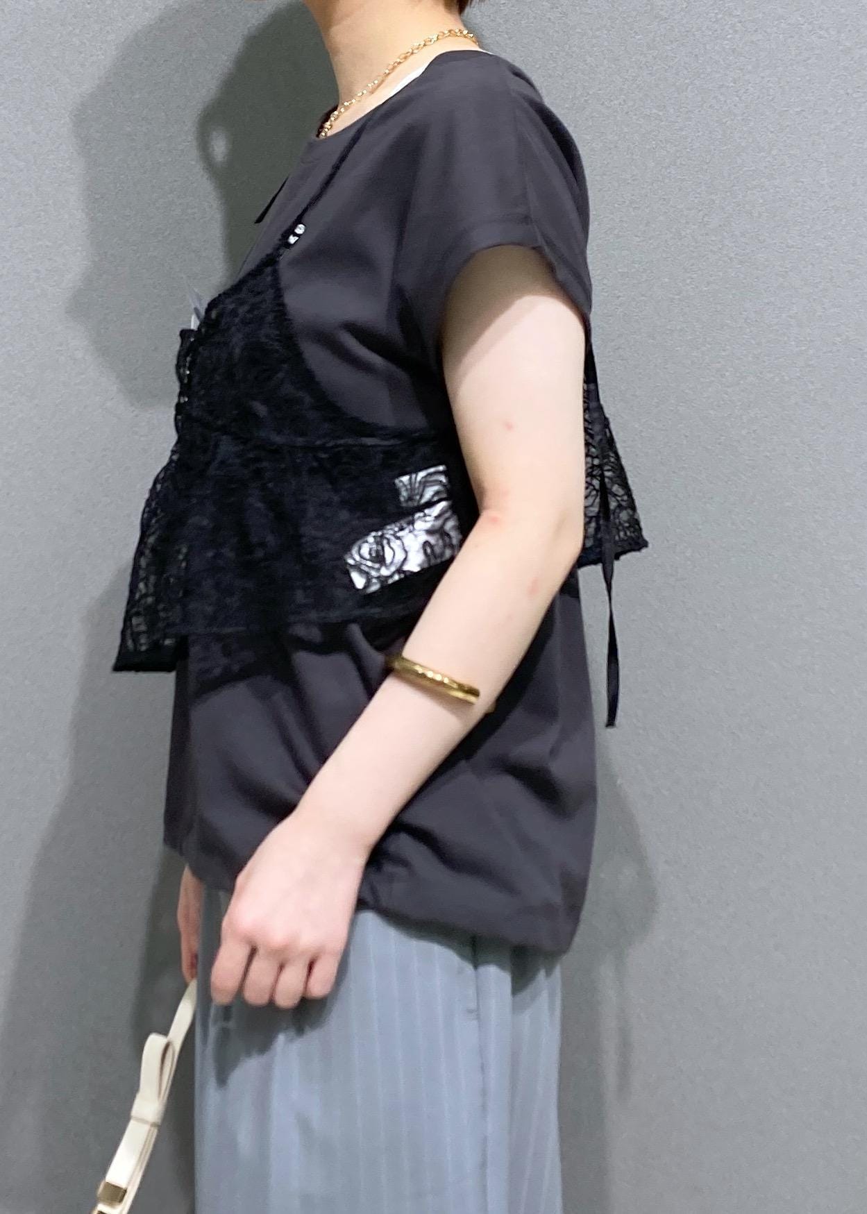程よくゆとりのあるビスチェなので、Tシャツからジャケットまで様々なアイテムとレイヤードできます。 -